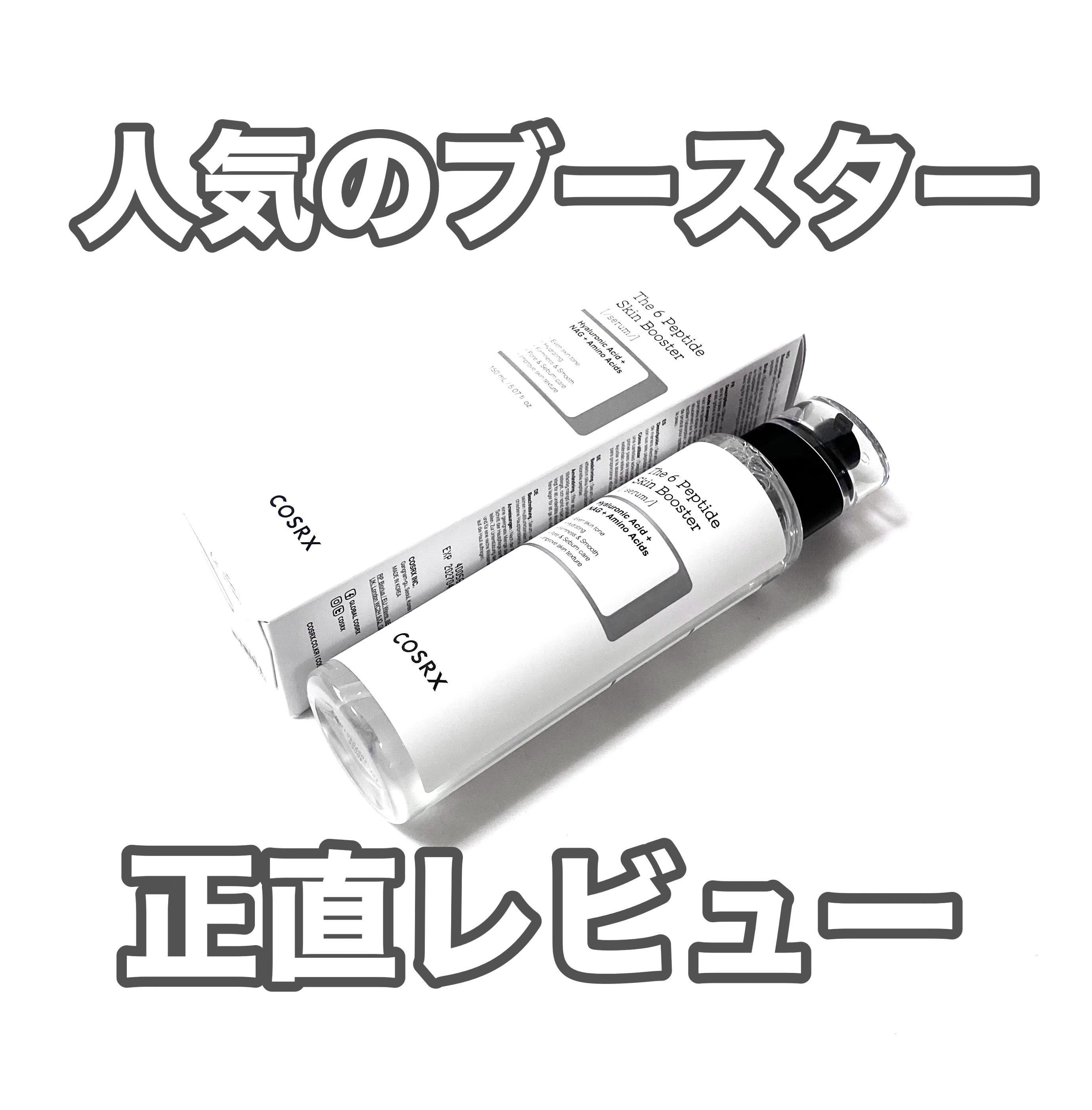 - 普段のスキンケアに1滴だけ! 肌荒れ予防からあらゆるエイジングケア*1を叶うスキンブースター。 ・COSRXが厳選した、それぞれ異なる効果の6種類のペプチド成分*2! それぞれ異なる効果の6種類のペプチド*2を1本に入れて毛穴ケア(乾燥による毛穴の開き、皮脂バランス)、肌のキメ、弾力、透明感、整肌、ハリなど肌のコンディションを整え、健やかに保ちます。 ・普段使っているトナーの後に! 普段使いのスキンケアにペアリングしやすいスキンブースターでトナーを塗った後、「一滴」を追加することで、次のステップ(セラム、アンプル、クリーム)のスペシャルスキンケア効果をしっかりサポートします。 ・素早く肌になじむ低刺激ウォータリーテクスチャー! お肌にやさしく低刺激な使い心地のスキンブースターでベタつきにくく、肌の角質層隅々まで素早くなじみます。 *1年齢に応じたお手入れ *2保湿成分