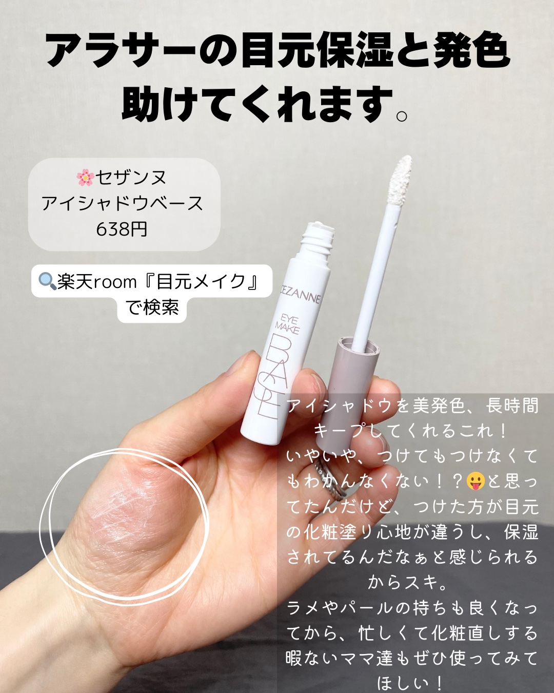 | アイシャドウベースランキング第3位 | アイシャドウがピタッと密着して、使用していない時と比べるととても落ちにくい しっかり色味を発色させてくれる | 詳細を見る | |