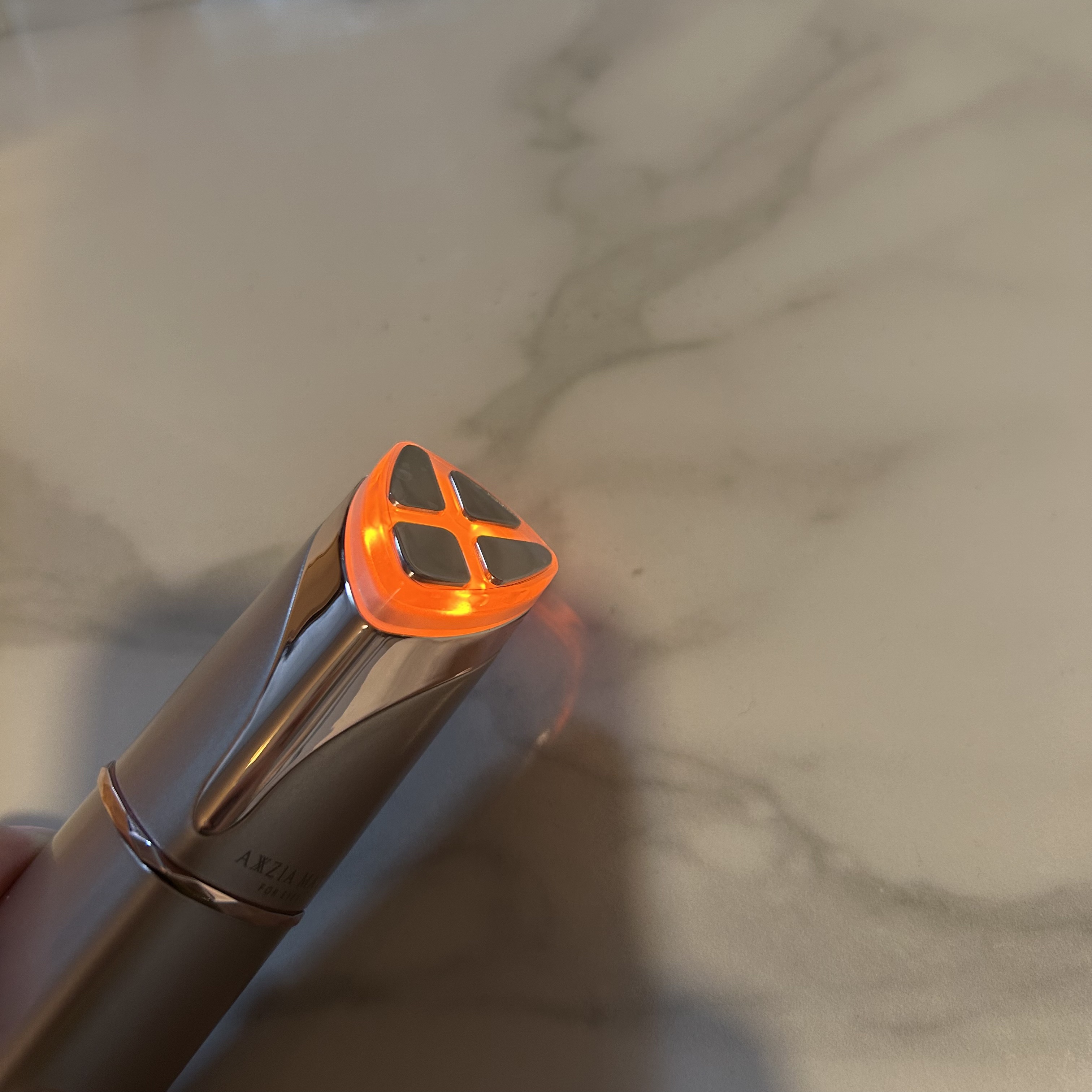 アクシージアから商品提供をいただきました。こちら10年以上の目もとケア研究のノウハウを集結したEMSで眼輪筋に働きかける美顔器。ピンクゴールドの本体は高級感があり、重量が120gと軽いです。本体底面の電源ボタン長押しで電源の入切、普通押しで紫...