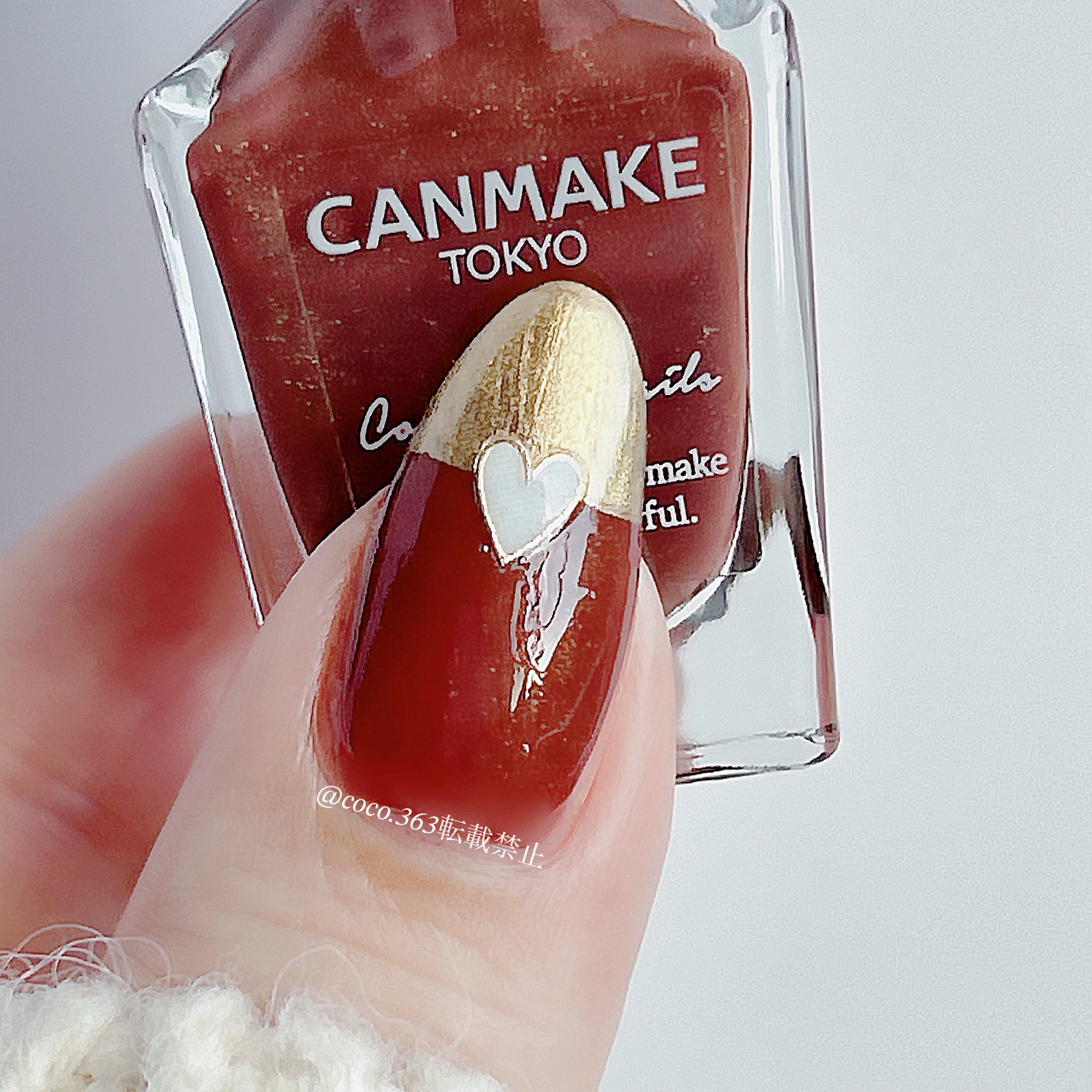 プチプラとは思えない!絶妙カラー✨ このキャンメイクのボルドー系カラー!めーーちゃくちゃ可愛いよ🥹✨ ボルドーとブラウンのいいとこ取りみたいな色🎨 あと、フレンチ苦手な人🙋♀️ このゴールドで塗ると、ちょっとガタついてても可愛いく見える! 完璧を求めなくてよし✊✨