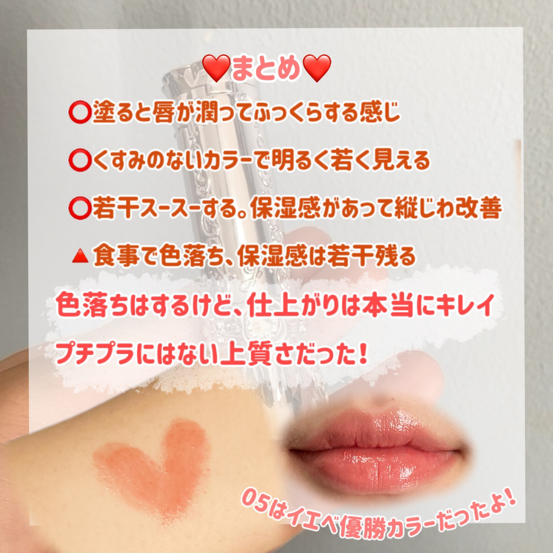 | 口紅・グロス・リップライナーランキング第134位 | シアーな発色でほんのり色づくので すっぴんやナチュラルメイクに合いそうです♡ | 詳細を見る | |