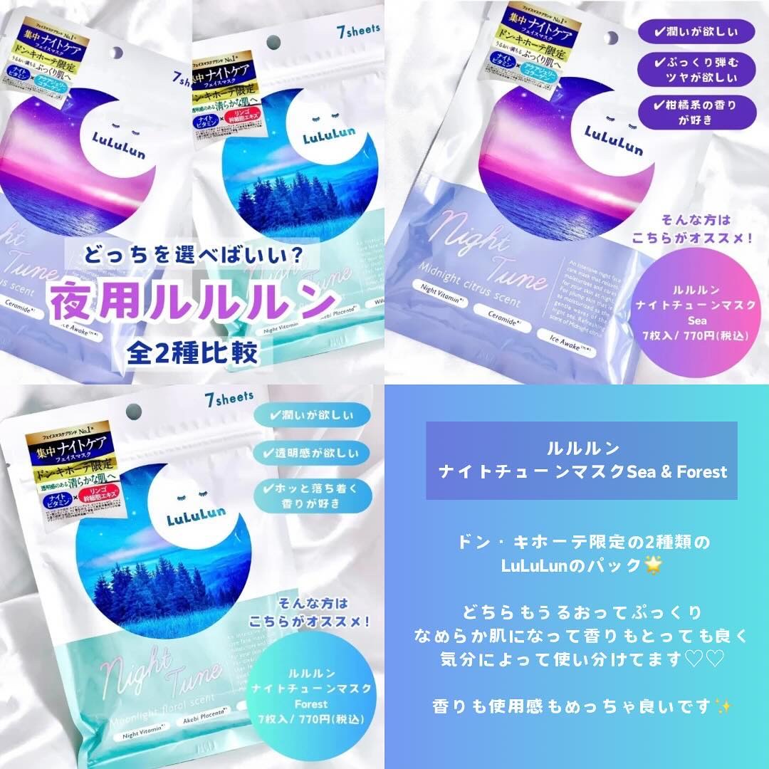 ルルルン信者は使ったと思うけど、まだ買ってないならこれ絶対買った方が良い‼️ 保湿や安定の使いやすさはもちろん、香りがまじで良いんよ😍 海と森は日中に乱れた肌バランスを夜間に整えてくれるらしく、乾燥を防いでモチッとふっくら肌にしてくれるよ!! 成分にまでこんなストーリー性出してくるところがさすがすぎる💖 成分のところ読むのこんなワクワクした事ないよ🤣✨