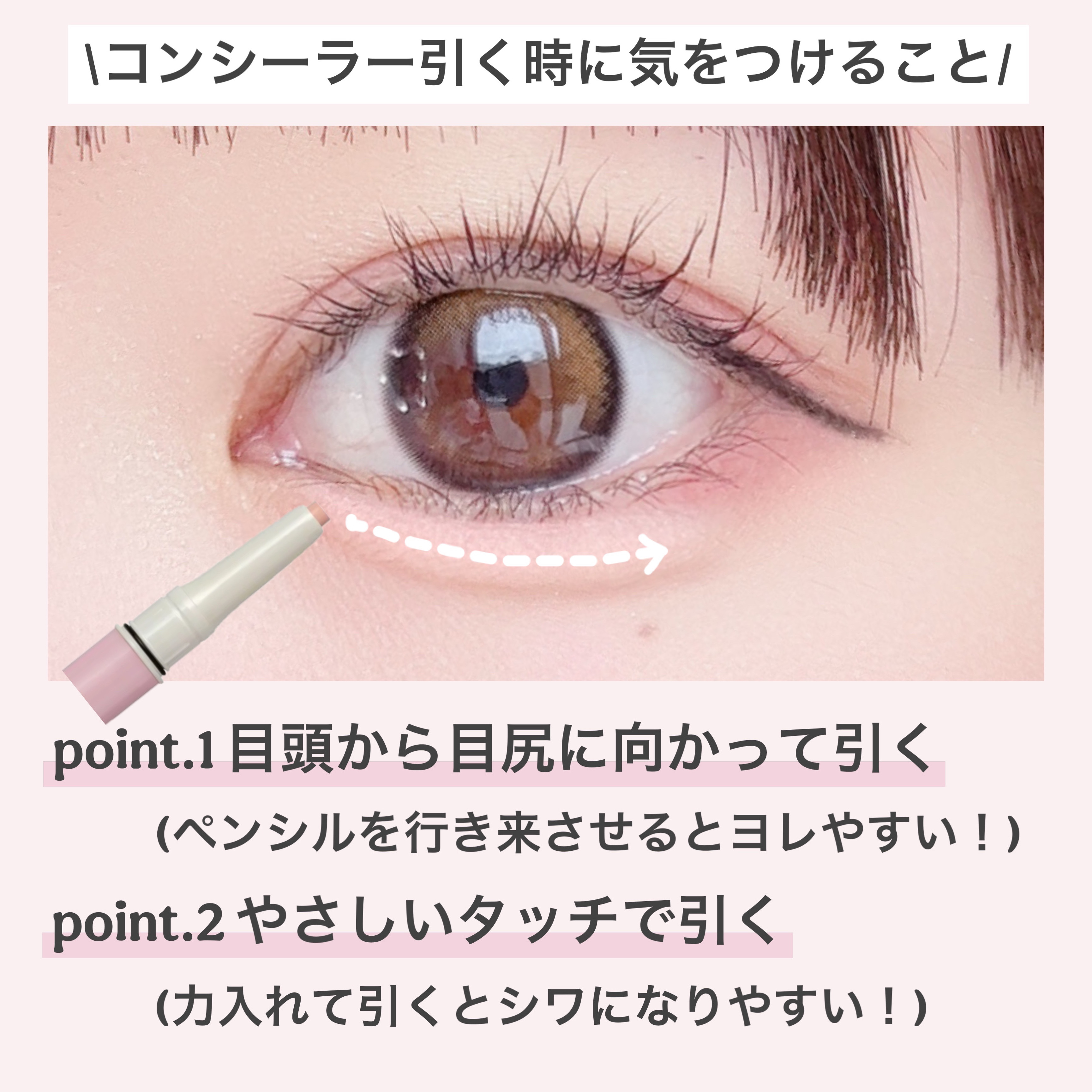 涙袋ぷっくり❤︎ ペンシルタイプのコンシーラー 直径3mmの細芯を採用 繊細な目元にもスルスル描ける いちごみるくカラーが絶妙に可愛い💕 自然なぷっくり涙袋が簡単に完成します✨