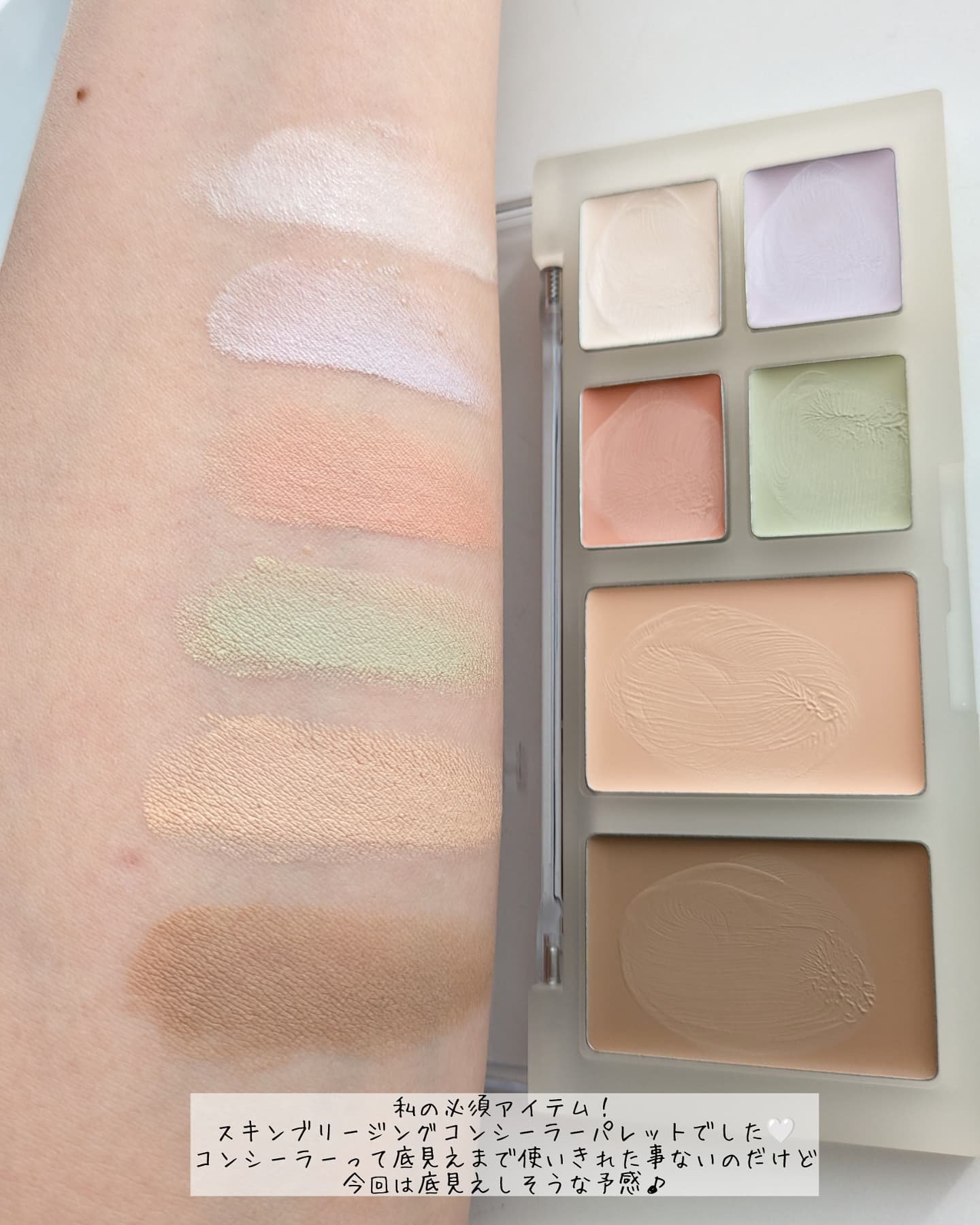 クマや赤みなどカバーするだけじゃなくて、シェーディングやハイライトとしても使える💞 ホーリーバジルなど肌への負担が少ない成分が使用されてるんだって😲 このパレット1つでカバーとメイクの立体感も出せて便利なコンシーラーパレットだったよ💖