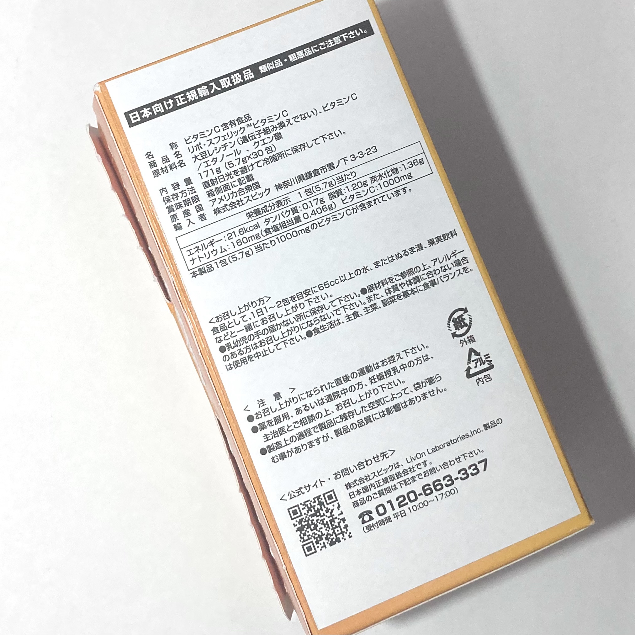 リポソーム化したビタミンCがカラダにしっかり届く!Lypo-SphericリポスフェリックビタミンCリポソームビタミンC何年、何箱飲んできたかわからないくらいリピしています。妊娠中は飲むのしんどくてやめていましたが産後5月くらいに再開しました...