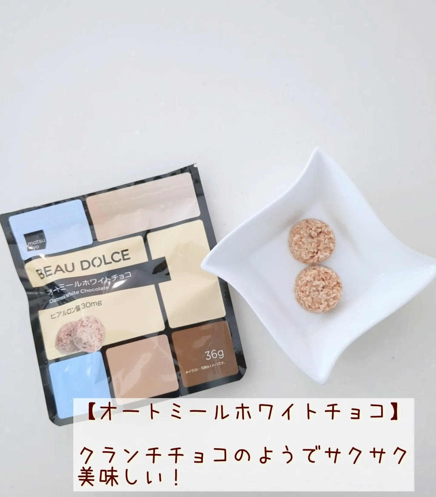 美容サポート成分を配合した新発想の美容おやつ matsukiyoのBEAU DOLCE(ボウドルチェ)🕊️ ヒアルロン酸やGABA、乳酸菌などの美容によいとされる成分を配合した新発想の美容おやつ🍪 コスメみたいなおしゃれパケで手に取るときワクワクする♪