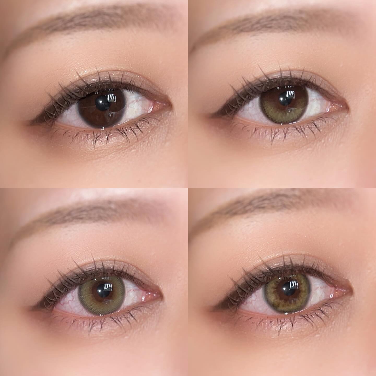 このオリーブはコスプレ感もなく使えて、浮かずに馴染むから可愛いよーー🍀 やっぱりGlowyが1番すき。 裸眼風に溶け込み神秘的な印象しっかりオリーブ感だしたいならこれ。