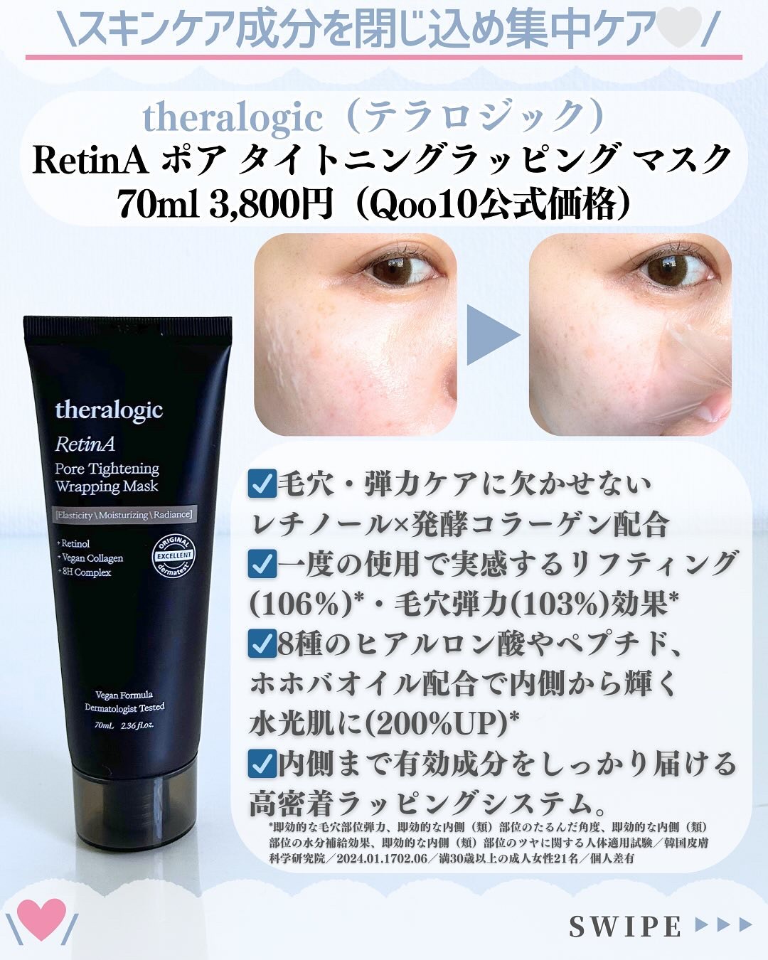 テラロジックは、韓国で予約困難な皮膚医院『ドクターズ皮膚科』の皮膚科専門医が開発したスローエイジングヴィーガンダーマコスメティックブランド🩵 新作・塗る「むきたまご肌」パック👀‼️ 高密着ラッピングシステム適用の塗って剥がすラッピングマスク。 翌日の肌調子がランクアップして化粧ノリが良くなる感じ。 スペシャルナイトケアにオススメです🌃