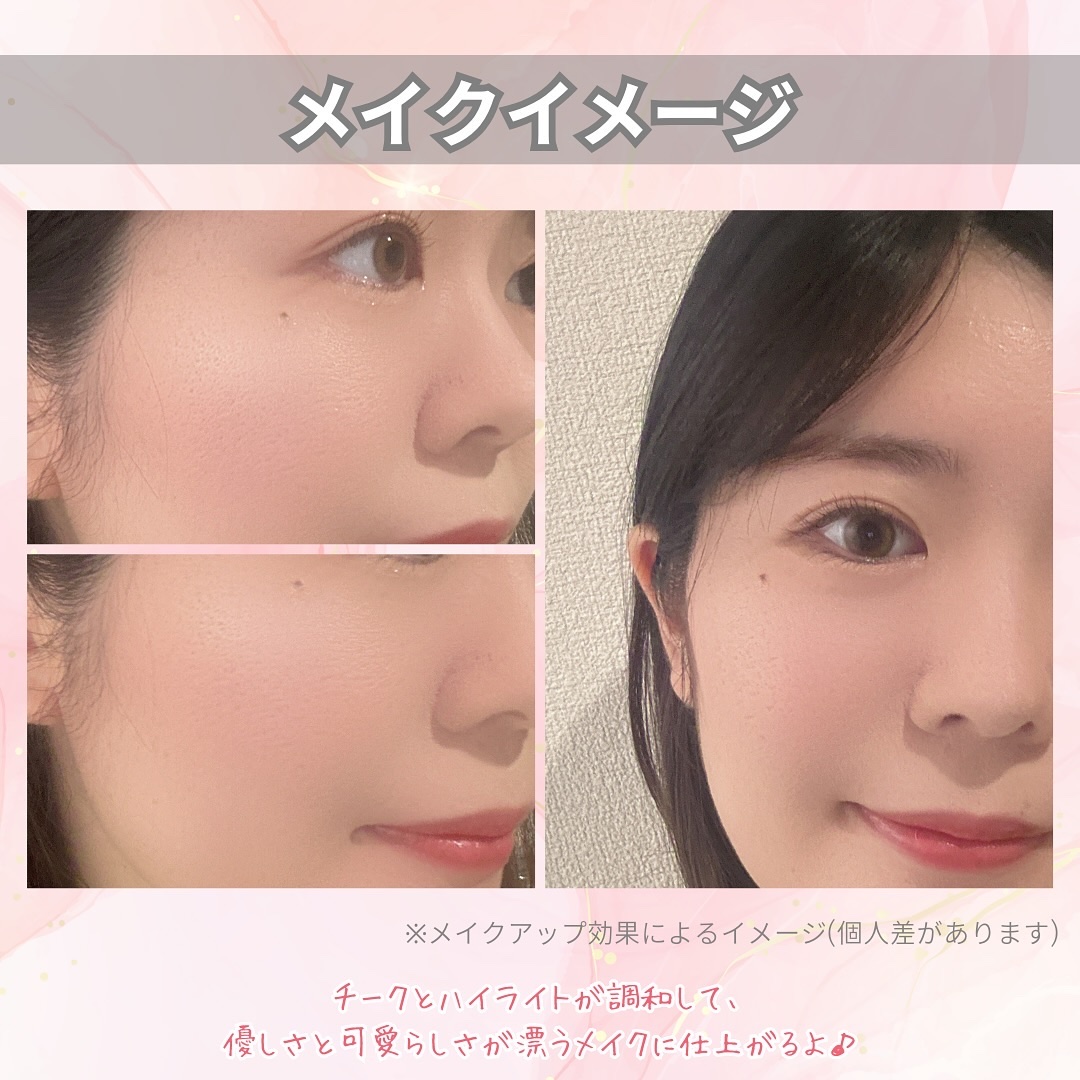 | 薄づきのチークになっています!少しラメ感があり、ツヤが欲しい人にはかなりオススメです。 | 詳細を見る | ||