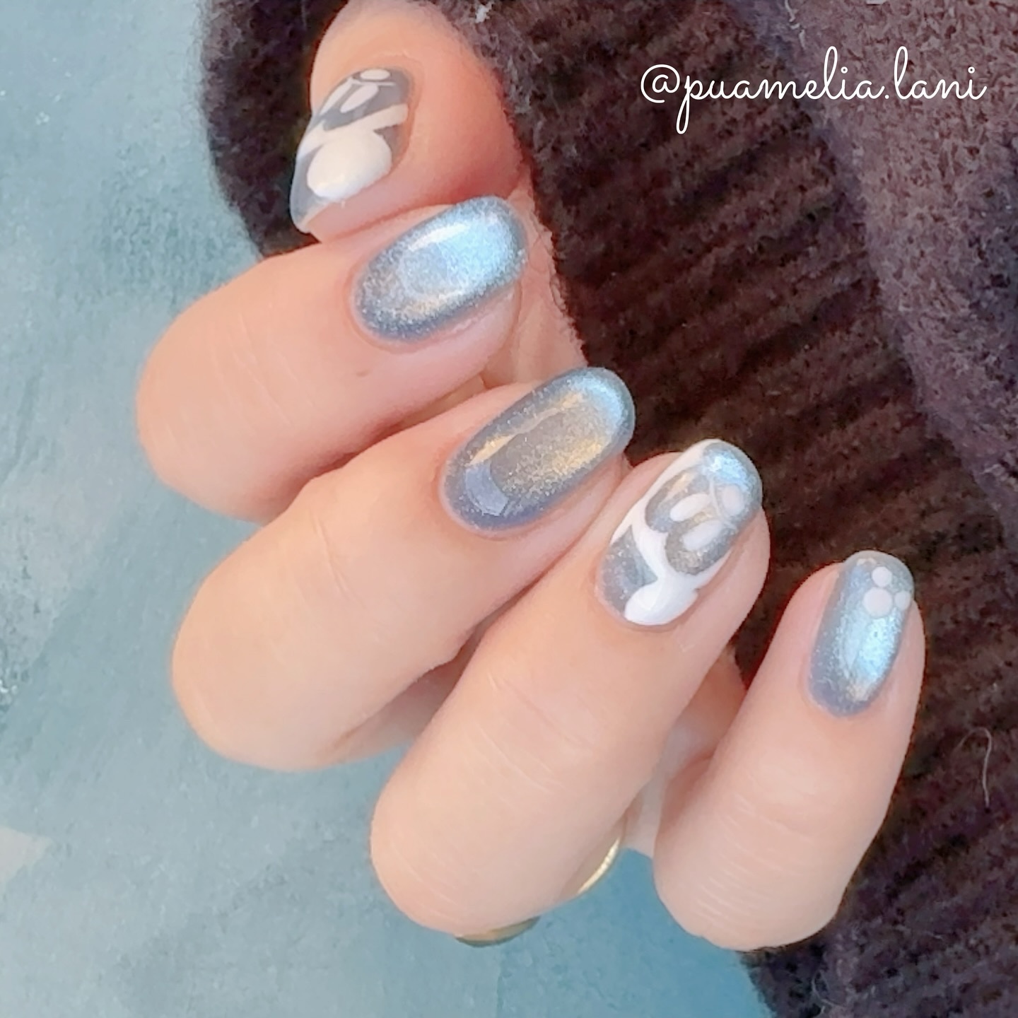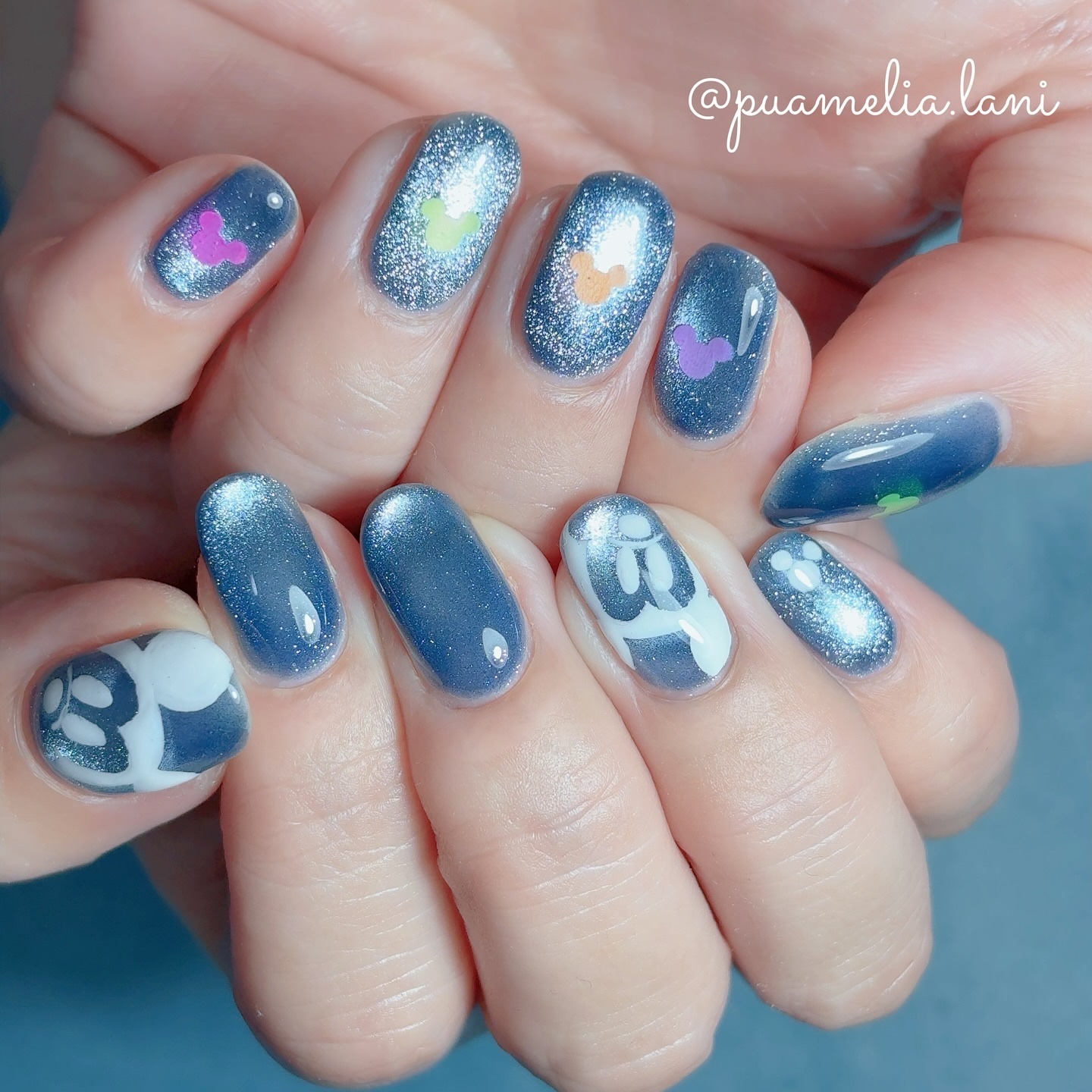 マグネットネイルの上にお絵描きしたら、奥行き増し増し𓂃𓈒𓏸✨ ひとつ前の投稿と同じカラーM26に、お絵描き用のジェルでミッキーのお顔♪ 両手同じカラーを塗るのがとても久しぶりなので両手撮りも♪ GELiSM: M26 sapphire glow ARKEYTOKYO: D002 OMD: PERFECT 3WAY GEL