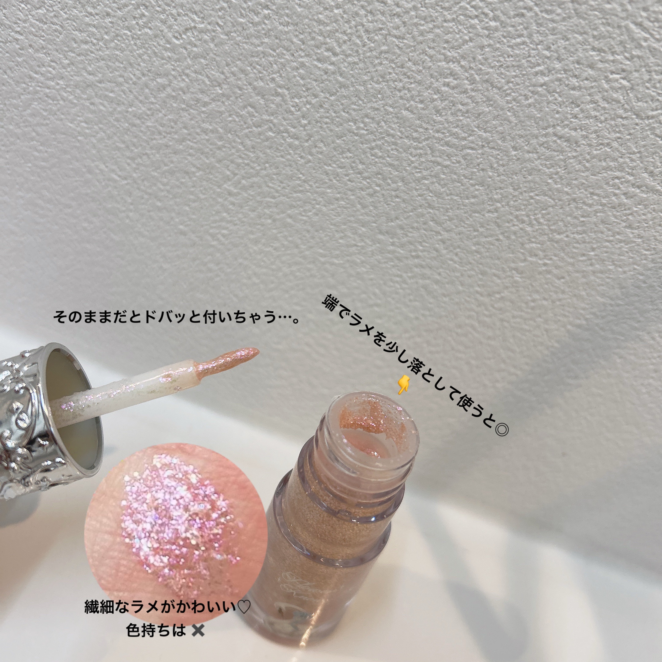 | リキッドアイシャドウランキング第2位 | 中に入っている偏光オーロララメの大きさがまた絶妙で、そのまま塗って使っても良いんだけど瞼にラメを乗せる感じで使ってもキラキラで可愛いよ | 詳細を見る | |