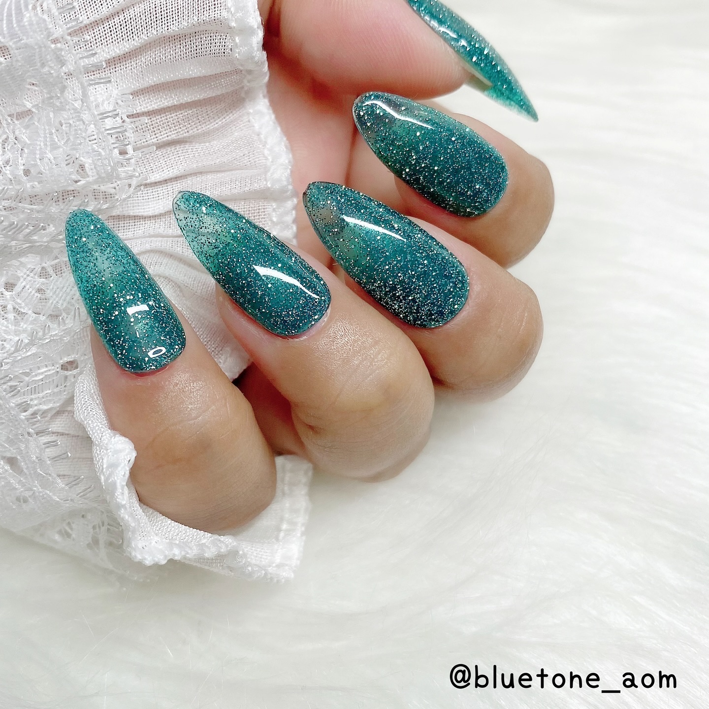 ラメがしっかりしてるし クリアカラーが入ってるから オーロラパウダー無しでも 充分キラキラしました! 反射強めのフィルムなので 実物はもっと うるうるとキラキラが強いです! ビー玉みたい🥺 ネイルシール長持ちさせたいけど ちょっと飽きてきたな〜って時とかに 全然違った印象になるのでオススメです! Seriaのベースジェル 本当にうるうるネイルしやすいので オススメしたい🙆♀️