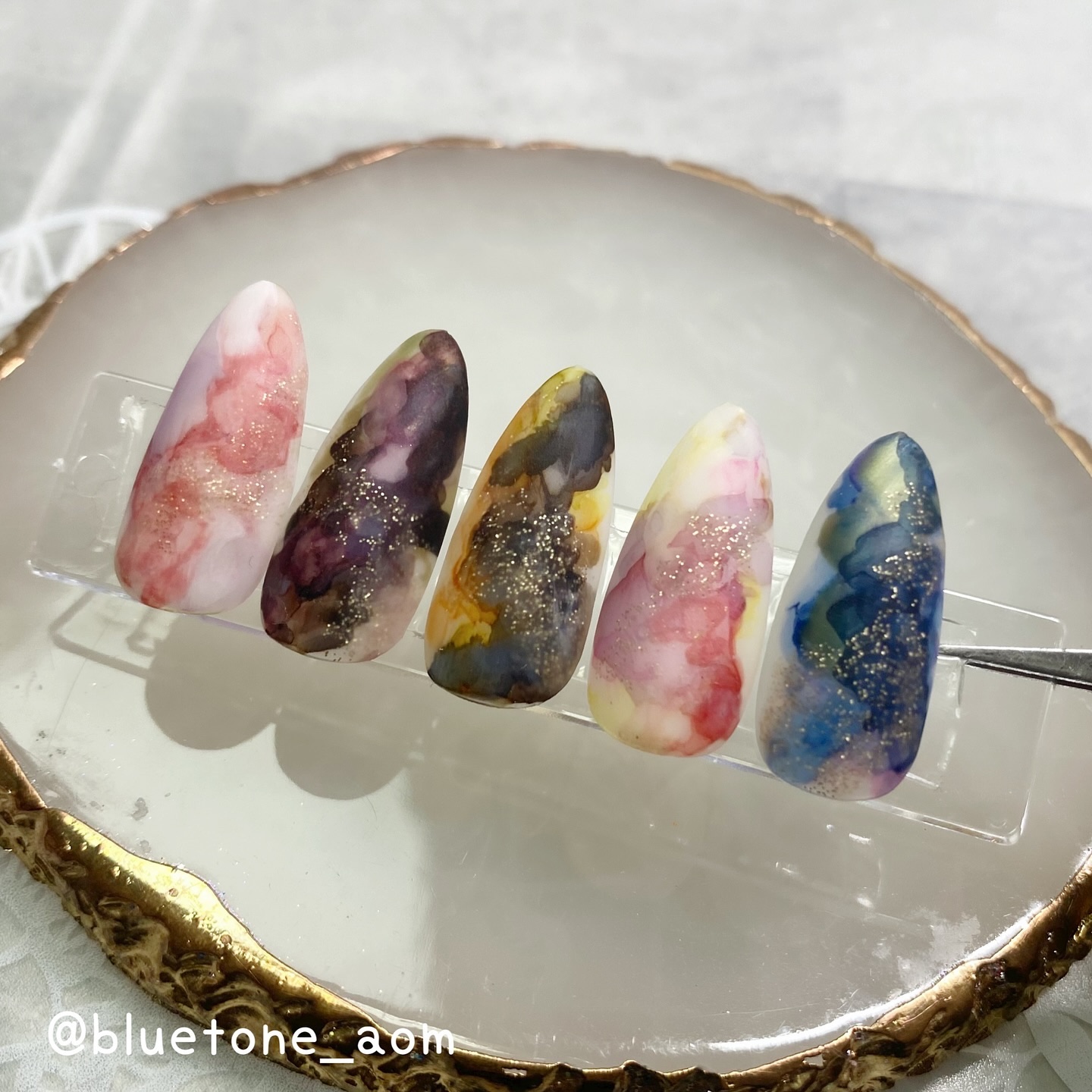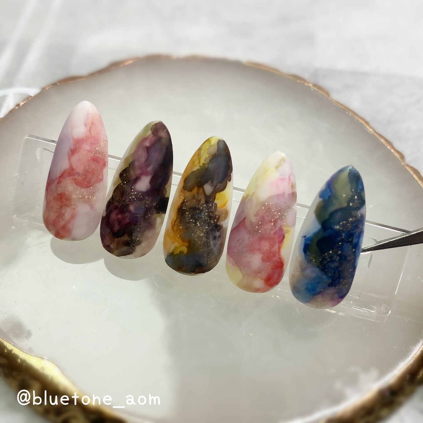 ラメがしっかりしてるし クリアカラーが入ってるから オーロラパウダー無しでも 充分キラキラしました! 反射強めのフィルムなので 実物はもっと うるうるとキラキラが強いです! ビー玉みたい🥺 ネイルシール長持ちさせたいけど ちょっと飽きてきたな〜って時とかに 全然違った印象になるのでオススメです! Seriaのベースジェル 本当にうるうるネイルしやすいので オススメしたい🙆♀️