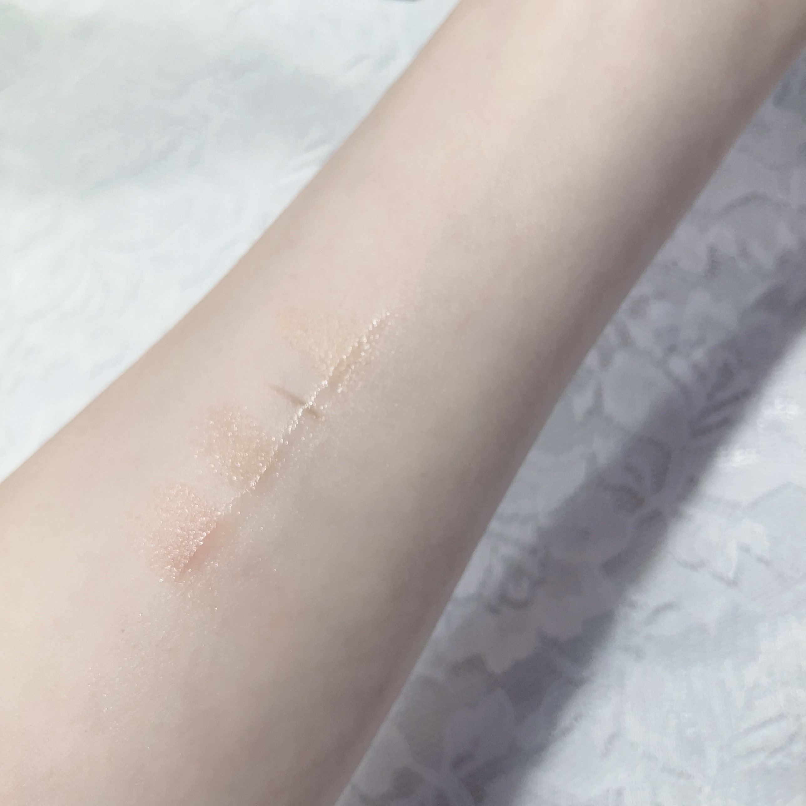 さらさらで伸びが良いテクスチャー。 肌への密着感もあって、ピンクベージュの色みが毛穴のカバーとほんんのりトーンアップも。 クリームのようなテクスチャー。 肌にのせすぎると白っぽくなるので、少しずつ伸ばすのが◎ なめらかテクスチャー。 細かいパールが入ってますが、ギラギラしたりもなく自然な感じ。