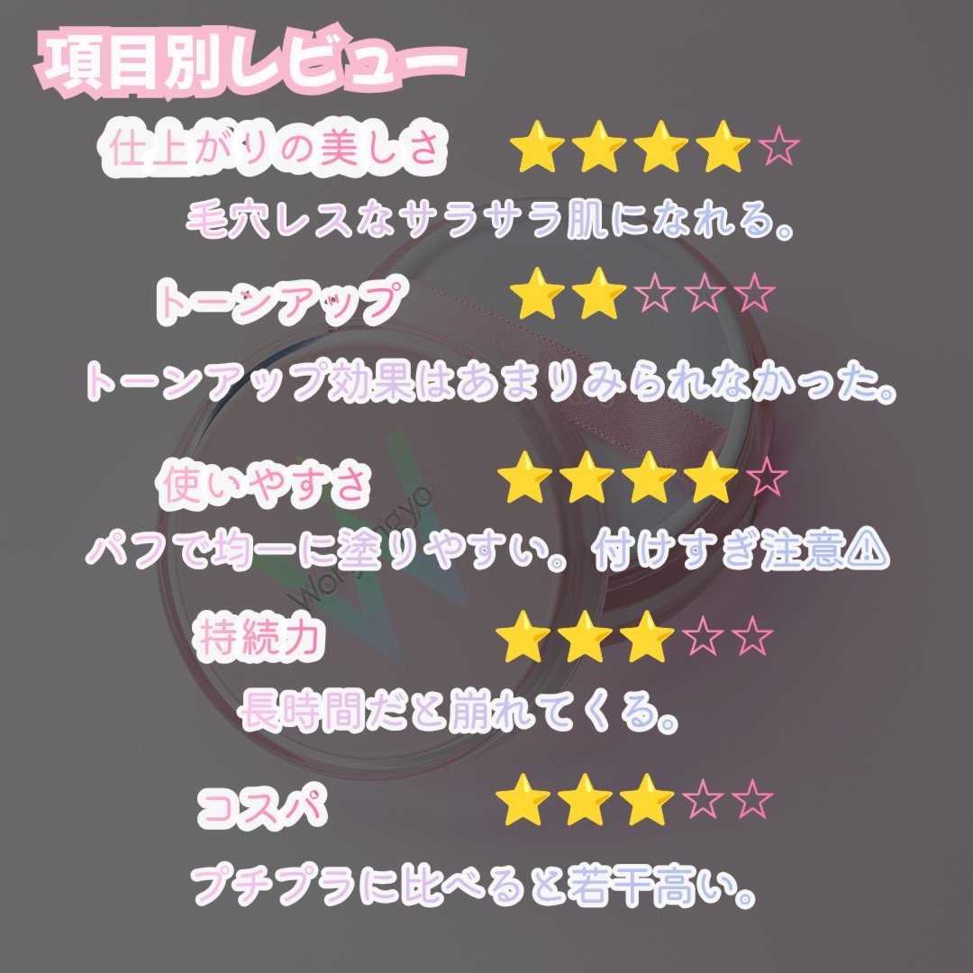 | フェイスパウダーランキング第1位 | パウダーが軽いのでほんとつけていることを 忘れてしまうような薄膜感な仕上がりでした | 詳細を見る | |