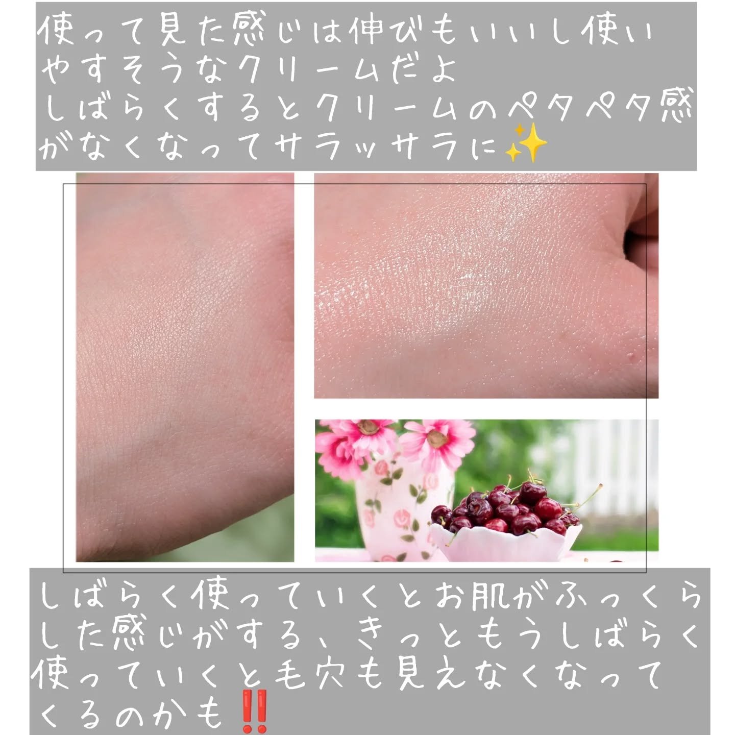 毛穴収縮クリームは、毛穴収縮に特化した、保湿たっぷりのクリームで韓国でも大人気なんだとか! 抗酸化物質が豊富なブラックチェリーフルーツエキスを含み、健康な肌を維持するのに効果的 さっぱりしたテクスチャーで全くべたべたしないタイプ!クリームって名前だけど乳液みたいな?