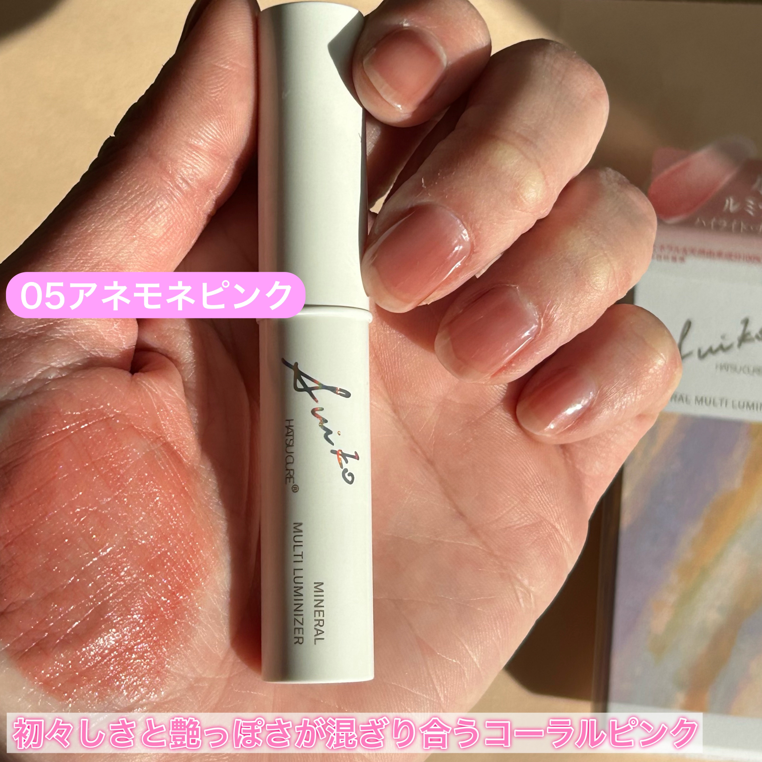 - Jelli Collagen®※1配合で内側からにじむようなツヤとうるおいを与える、スティックタイプのルミナイザ―。 ハイライトやリップとしてはもちろん、マルチカラーと重ねて質感をグロッシーにチェンジする事もできます。 ミネラルと天然由来100%のルミナイザーです。 ※1クラゲエキス(保湿成分)