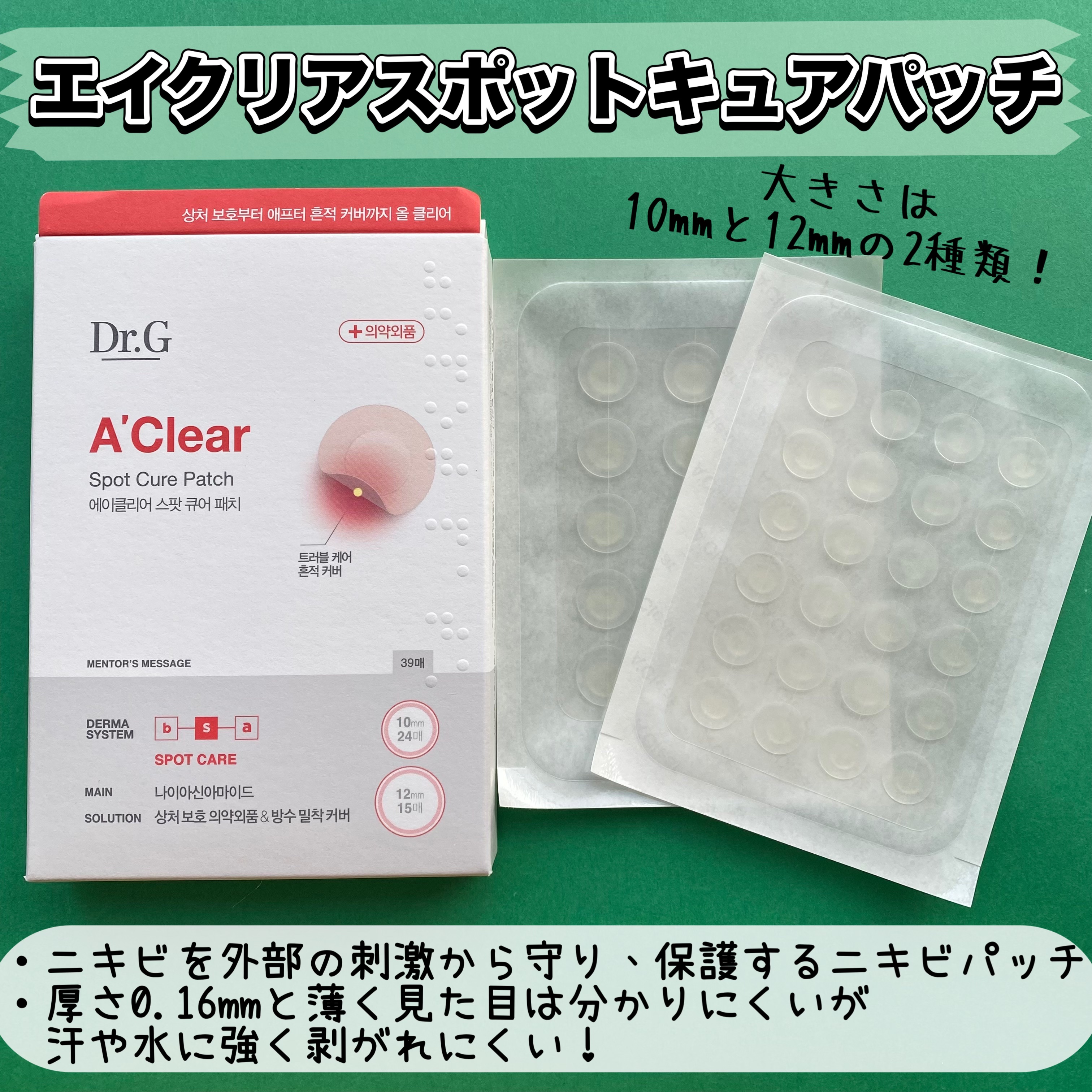 緑茶を使ったあぶらとり紙、レッドブレミッシュオイルコントロールペーパーとニキビパッチのエイクリアスポットキュアパッチ! カテキンが皮脂をコントロールし肌を守ってくれる! 薄手で目立ちにくいから日中でも使いやすい!これひとつ貼っておくだけで鎮静から色素沈着のケアまでできるのは嬉しい!