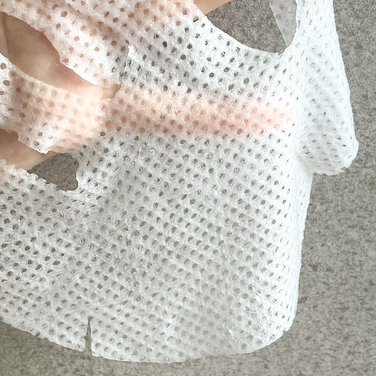 まずこのシートのとぅるとぅるさにびっくり! 「メルティーフィールシート」とのことで、やわらかい〜!!! 付けた後は うるおいでお肌がきゅっとハリが出る感じ✨ シートに液ヒタヒタで絞れるくらい 10分付けた後のシートでも 腕や脚までパッティングできます