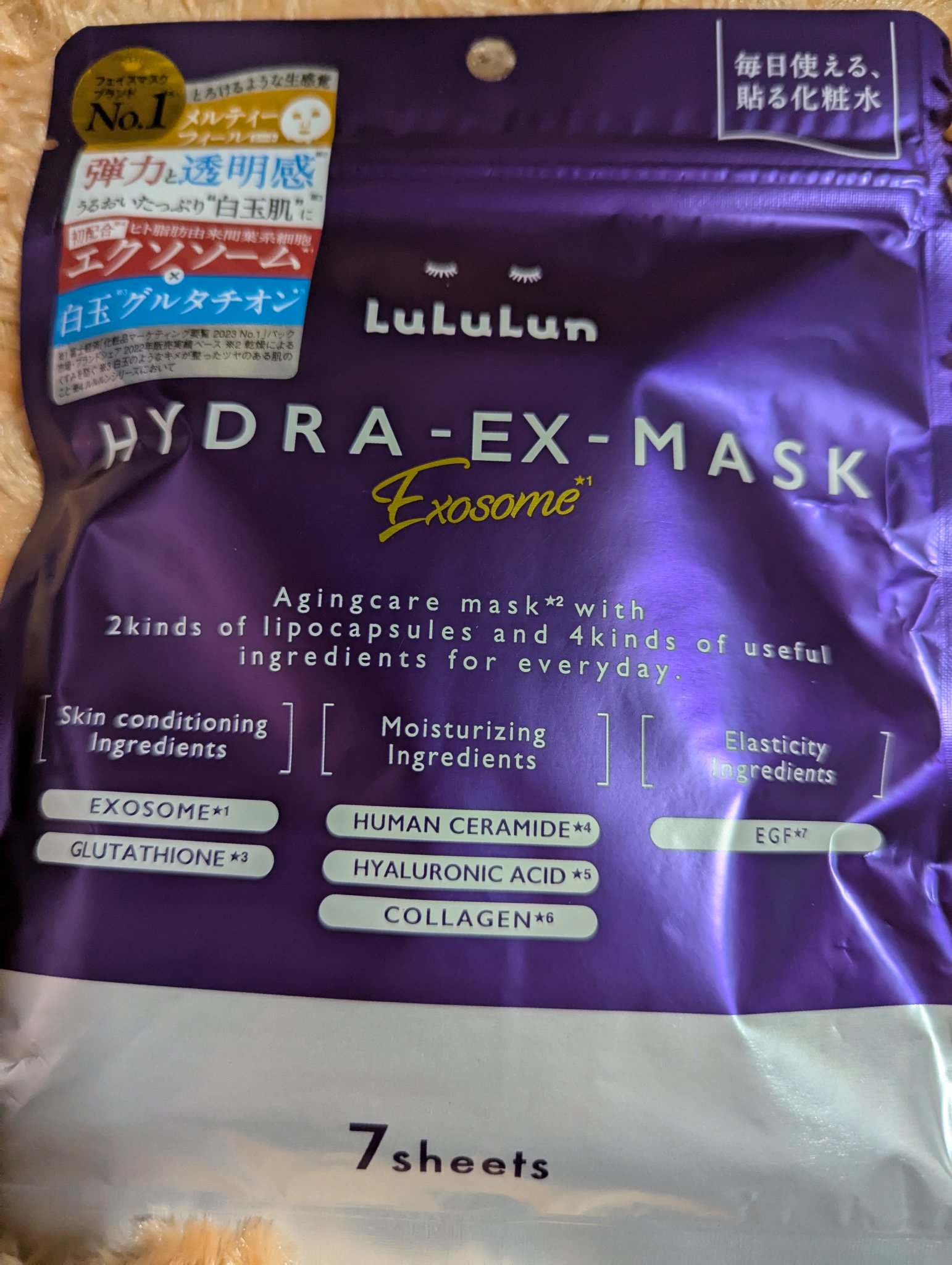- ルルルンハイドラシリーズから新登場。うるおいにプラスするのは、「エクソソーム*1」。先端再生テクノロジーにインスパイアされた、デイリーエイジングケア※1マスクです。白玉※2グルタチオン*2をプラス配合し、弾力・透明感※3・つやめきのあるなめらかなお肌へ導きます。 (*1 整肌成分 ヒト脂肪由来間葉系細胞エクソソーム *2 整肌成分 グルタチオン、アルブチン、レシチン ※1 年齢に応じて肌へうるおいと弾力を与えるケアのこと ※2 白玉のようなキメが整ったツヤのある肌のこと ※3 うるおいを与えて、乾燥によるくすみを防ぐ)