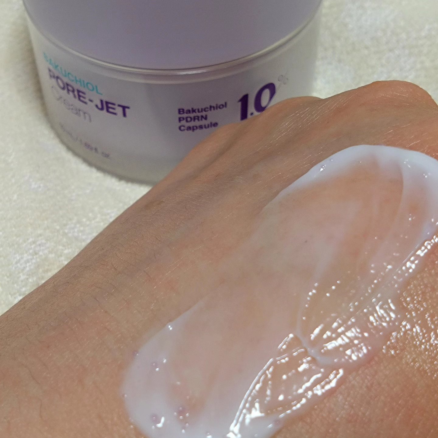 バクチオールポアジェットクリーム💜 Dr.Gのレッドブレミッシュラインの当たらしいライン✨ 少ない量でしっかり保湿されてる感を感じられた😌💠 毛穴よりも2600倍小さいエクソソームが肌の奥まで浸透💠