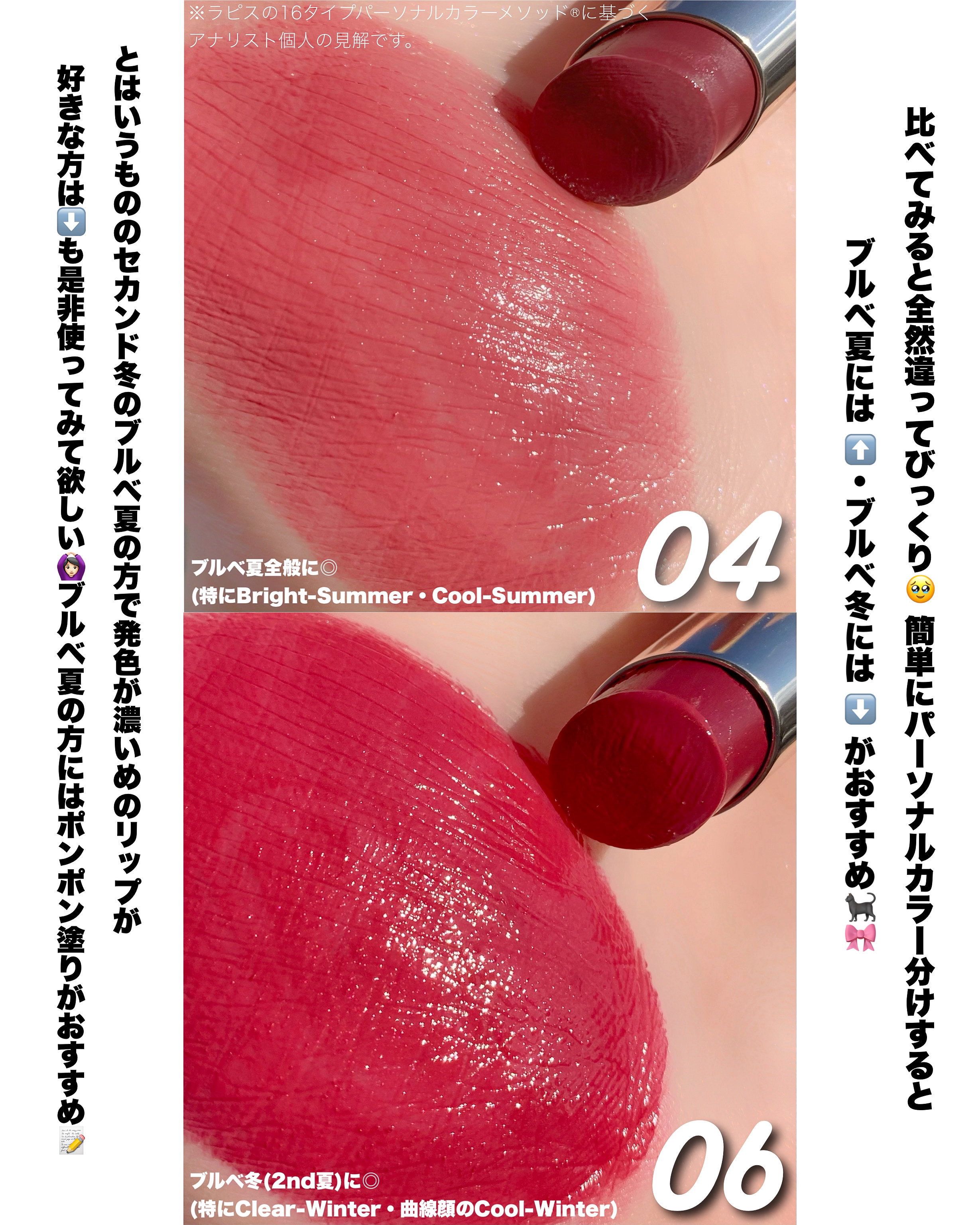 - <01 マイチャイ> テトライソステアリン酸ジペンタエリスリチル、オクチルドデカノール、水添ポリイソブテン、ビスアルキル(C16-18)グリセリルウンデシルジメチコン、ヘキサヒドロキシステアリン酸ジペンタエリスリチル、ジカプリン酸ネオペンチルグリコール、ラウロイルグルタミン酸ジ(フィトステリル/オクチルドデシル)、リンゴ酸ジイソステアリル、パラフィン、イソノナン酸イソトリデシル、合成ワックス、マイクロクリスタリンワックス、ラウロイルグルタミン酸ジ(オクチルドデシル/フィトステリル/ベヘニル)、ホホバ種子油、水添マイクロクリスタリンワックス、トコフェロール、(エチレン/プロピレン)コポリマー、ポリエチレン、ヒアルロン酸Na、(+/-)(チタン/酸化チタン)焼結物、シリカ、セルロース、マイカ、ラウロイルアスパラギン酸Na、ラウロイルリシン、塩化亜鉛、酸化チタン、酸化鉄、水酸化Al、トリイソステアリン酸イソプロピルチタン、トリエトキシカプリリルシラン、合成フルオロフロゴパイト、黄4、青1、赤201、赤202 <02 レイディアントラセット> テトライソステアリン酸ジペンタエリスリチル、オクチルドデカノール、水添ポリイソブテン、ジカプリン酸ネオペンチルグリコール、ビスアルキル(C16-18)グリセリルウンデシルジメチコン、ヘキサヒドロキシステアリン酸ジペンタエリスリチル、リンゴ酸ジイソステアリル、ラウロイルグルタミン酸ジ(フィトステリル/オクチルドデシル)、パラフィン、イソノナン酸イソトリデシル、合成ワックス、マイクロクリスタリンワックス、ラウロイルグルタミン酸ジ(オクチルドデシル/フィトステリル/ベヘニル)、ホホバ種子油、水添マイクロクリスタリンワックス、トコフェロール、(エチレン/プロピレン)コポリマー、ポリエチレン、ヒドロキシステアリン酸エチルヘキシル、ヒアルロン酸Na、(+/-)(チタン/酸化チタン)焼結物、セルロース、ラウロイルアスパラギン酸Na、塩化亜鉛、酸化チタン、酸化鉄、水酸化Al、トリイソステアリン酸イソプロピルチタン、トリエトキシカプリリルシラン、合成フルオロフロゴパイト、黄5、青1、赤201、赤202 <03 シャイハート> テトライソステアリン酸ジペンタエリスリチル、オクチルドデカノール、水添ポリイソブテン、ビスアルキル(C16-18)グリセリルウンデシルジメチコン、ヘキサヒドロキシステアリン酸ジペンタエリスリチル、ジカプリン酸ネオペンチルグリコール、ラウロイルグルタミン酸ジ(フィトステリル/オクチルドデシル)、リンゴ酸ジイソステアリル、パラフィン、イソノナン酸イソトリデシル、合成ワックス、マイクロクリスタリンワックス、ラウロイルグルタミン酸ジ(オクチルドデシル/フィトステリル/ベヘニル)、ホホバ種子油、水添マイクロクリスタリンワックス、トコフェロール、(エチレン/プロピレン)コポリマー、ポリエチレン、ヒアルロン酸Na、(+/-)(チタン/酸化チタン)焼結物、シリカ、セルロース、マイカ、ラウロイルアスパラギン酸Na、ラウロイルリシン、塩化亜鉛、酸化チタン、酸化鉄、水酸化Al、トリイソステアリン酸イソプロピルチタン、トリエトキシカプリリルシラン、合成フルオロフロゴパイト、黄4、青1、赤201、赤202 <04 ルビー ラビリンス> テトライソステアリン酸ジペンタエリスリチル、オクチルドデカノール、水添ポリイソブテン、ビスアルキル(C16-18)グリセリルウンデシルジメチコン、ヘキサヒドロキシステアリン酸ジペンタエリスリチル、ジカプリン酸ネオペンチルグリコール、ラウロイルグルタミン酸ジ(フィトステリル/オクチルドデシル)、リンゴ酸ジイソステアリル、パラフィン、イソノナン酸イソトリデシル、合成ワックス、マイクロクリスタリンワックス、ラウロイルグルタミン酸ジ(オクチルドデシル/フィトステリル/ベヘニル)、ホホバ種子油、水添マイクロクリスタリンワックス、トコフェロール、(エチレン/プロピレン)コポリマー、ポリエチレン、ヒアルロン酸Na、(+/-)(チタン/酸化チタン)焼結物、シリカ、セルロース、マイカ、ラウロイルアスパラギン酸Na、ラウロイルリシン、塩化亜鉛、酸化チタン、酸化鉄、水酸化Al、トリイソステアリン酸イソプロピルチタン、トリエトキシカプリリルシラン、合成フルオロフロゴパイト、黄4、青1、赤201、赤202 <05 ムーンリット モーブ> テトライソステアリン酸ジペンタエリスリチル、オクチルドデカノール、水添ポリイソブテン、ビスアルキル(C16-18)グリセリルウンデシルジメチコン、ヘキサヒドロキシステアリン酸ジペンタエリスリチル、ジカプリン酸ネオペンチルグリコール、ラウロイルグルタミン酸ジ(フィトステリル/オクチルドデシル)、リンゴ酸ジイソステアリル、パラフィン、イソノナン酸イソトリデシル、合成ワックス、マイクロクリスタリンワックス、ラウロイルグルタミン酸ジ(オクチルドデシル/フィトステリル/ベヘニル)、ホホバ種子油、水添マイクロクリスタリンワックス、トコフェロール、(エチレン/プロピレ