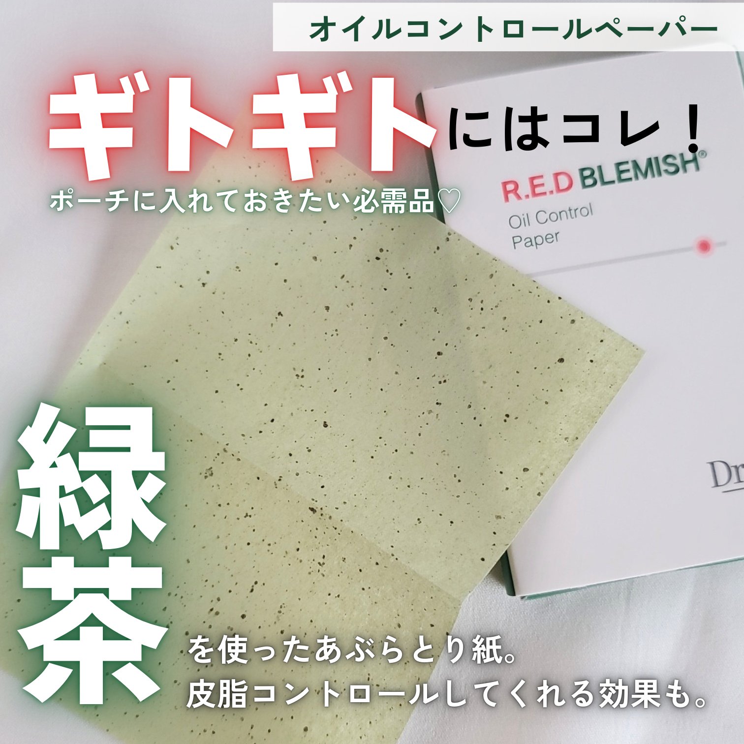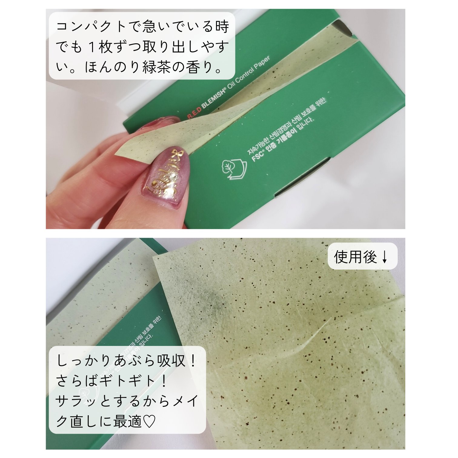 緑茶を使ったあぶらとり紙、レッドブレミッシュオイルコントロールペーパーとニキビパッチのエイクリアスポットキュアパッチ! カテキンが皮脂をコントロールし肌を守ってくれる! 薄手で目立ちにくいから日中でも使いやすい!これひとつ貼っておくだけで鎮静から色素沈着のケアまでできるのは嬉しい!