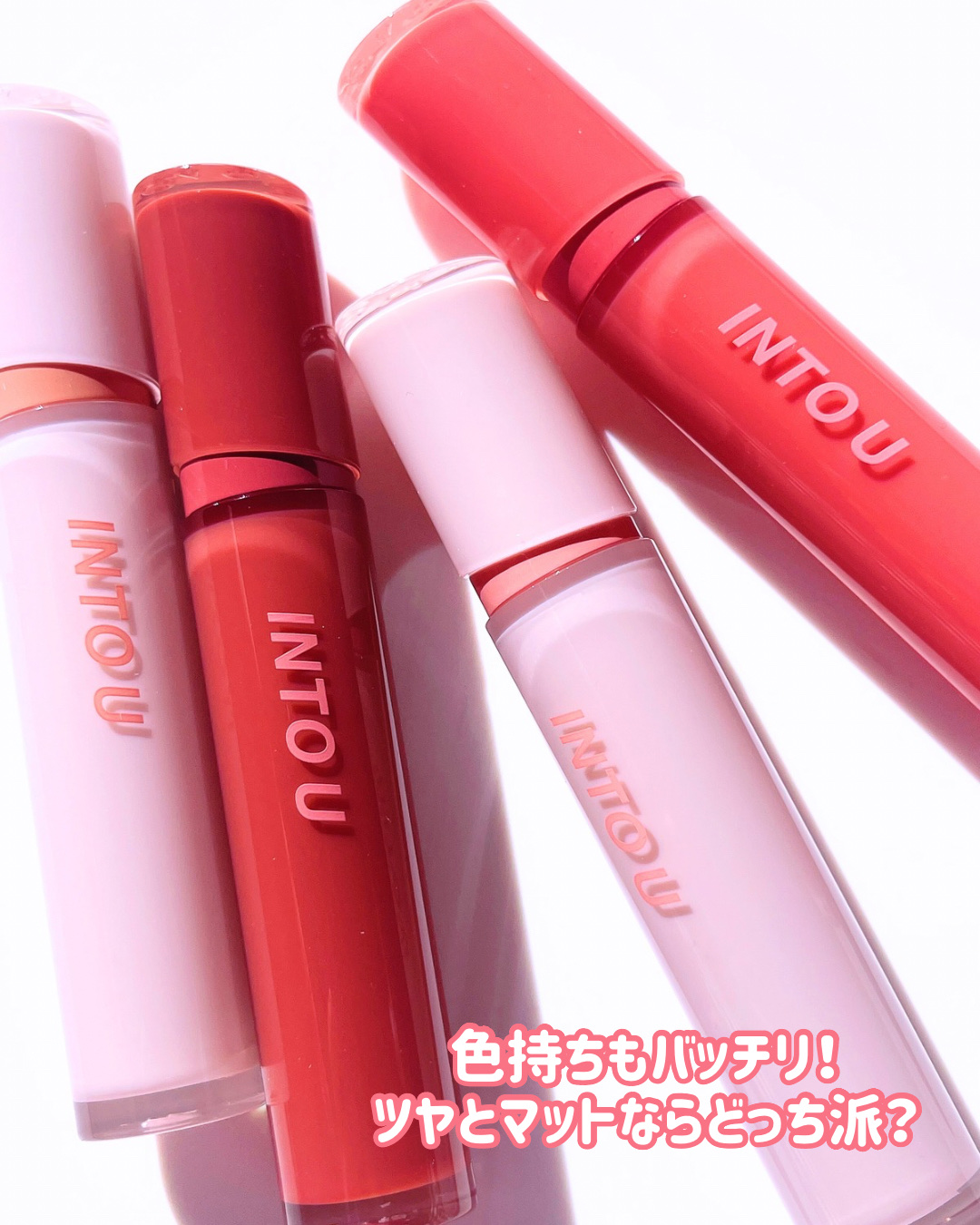 12月5日(木)より新発売!! イントゥユーさんに試させて頂きました こちらはマット!ほわっとした仕上がりになるのが可愛い👍🩷ྀི どちらも使いやすい色味で可愛いと思う〜。 パケもオシャレなところも好き💕