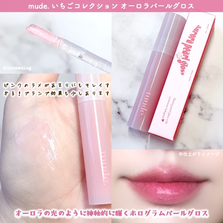 甘酸っぱいいちごカラーが可愛い mude.の限定コレクション🤍🩷 リップの白み具合がマジギャル卍で可愛ちぃ🥹🫶🏻単体だとさすがにギャルすぎるので、ベースとして使ったり、チークに使うのもアリ👍🏻👍 練り香水はフレッシュいちご!というよりは、いちごキャンディっぽさのある甘酸っぱい香り🍓後から清楚な香りが追って来ますがそちらは弱めで持続力も…🤫