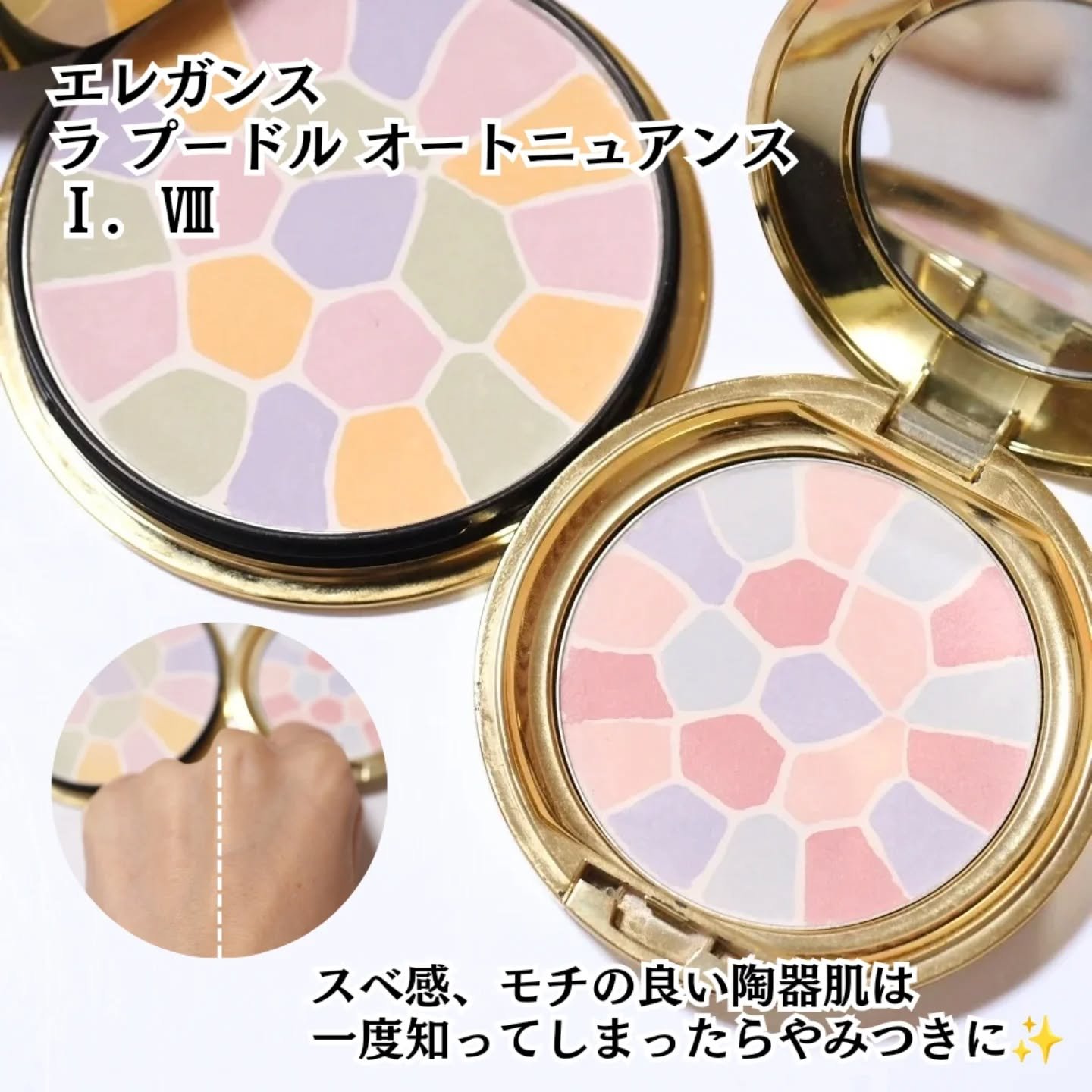 白っぽピンクチークが欲しかったので「06 透重 SUKEKASANE」にしました♡ ふんわり優しい白みピンクと、ラメが盛り沢山の白のグラデーションが可愛いすぎるパレット! 透明感のあるふんわりカラーなので、発色も調整しやすいのだとか♡ もっとツヤ感を足したいところには、右上の白だけを追加するといいよと教えてもらいました♪ ふんわり透けるようないちごミルクカラーが可愛すぎる!! これを乗せると顔全体の透明感が上がる気がします😊
