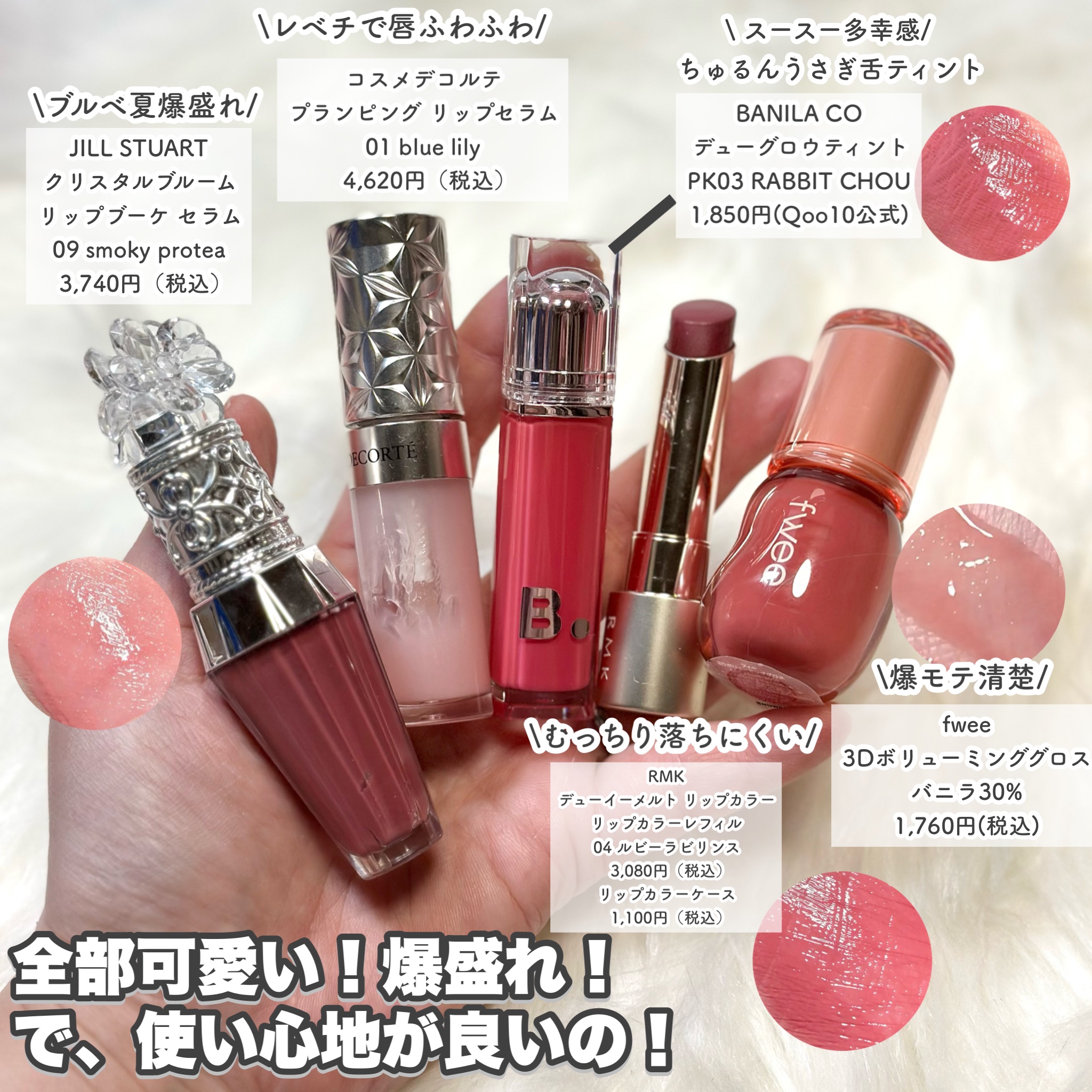 見た目も可愛いチークポップ♡ ナチュラルな血色感とツヤ感が美しい。 ダントツのツヤ感♡ちょっとトーンが低めなので膨張せずツヤツヤを楽しめます◎ めちゃくちゃ好き!ふわっとしつつもツヤっと♡絶妙な血色感! パケがコロンとしたハートで可愛い♡ 肌に溶け込む血色感。チーク苦手な人にイチオシ!どちらかと言うとイエベ向け ほわほわ細かい粉質◎ さすがコスメオタのサラさんプロデュース!!
