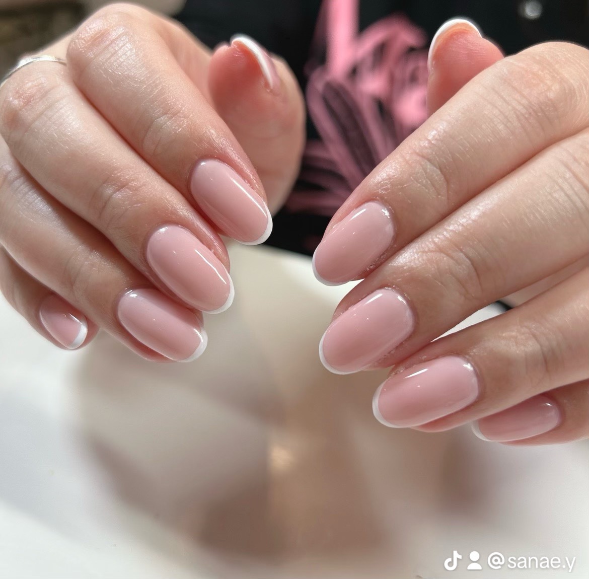 シンプルめのネイルです ૮ o̴̶̷̤ ̫ o̴̶̷̤ ა #セルフネイル #セルフジェルネイル #ネイル #ネイルケア #冬ネイル #ピンクネイル #ニット映えネイル