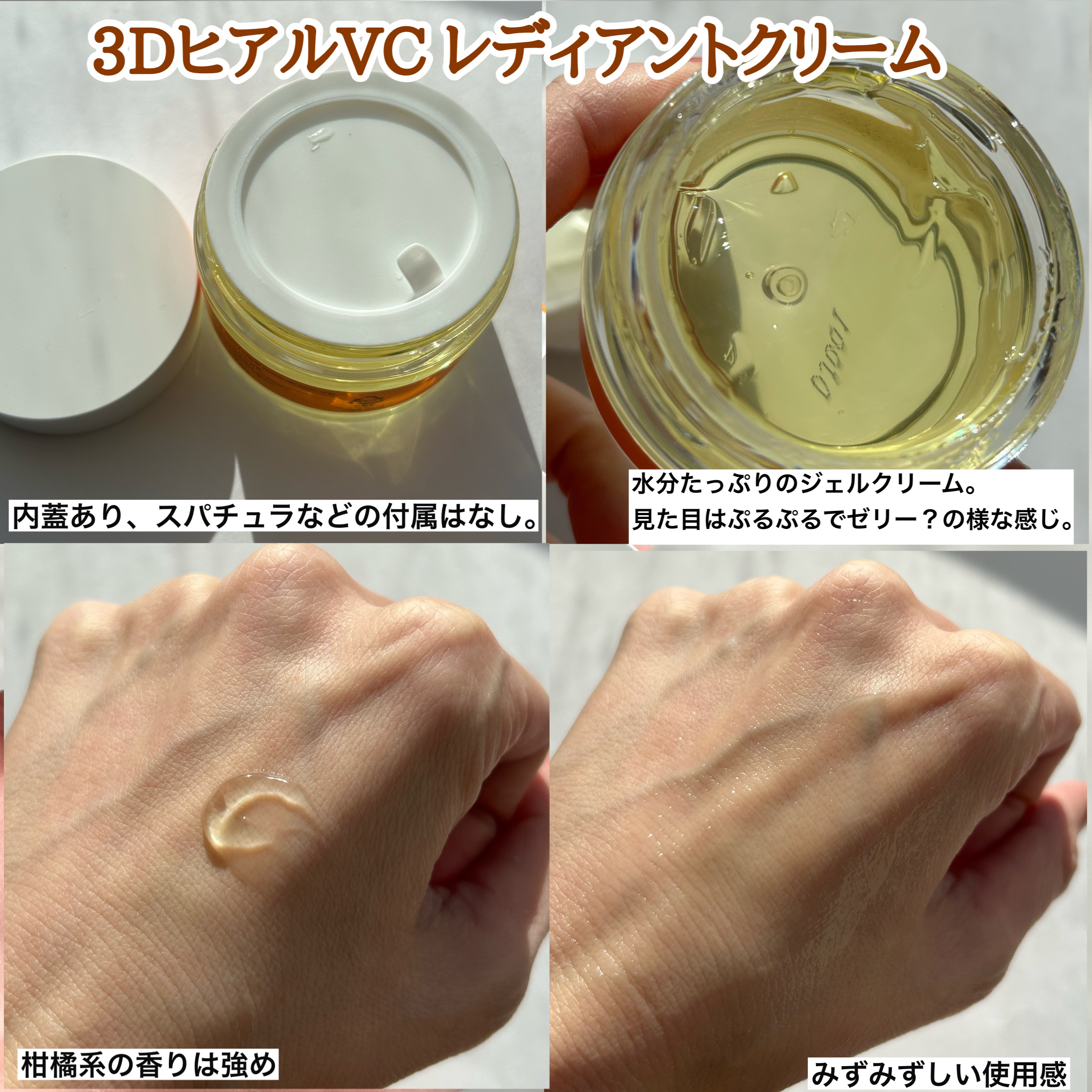 無香料。少しトロリとしたみずみずしい使用感。ビタミンCのカプセルが弾け肌にスーッとなじみます。 オレンジの爽やかな香り。トロっとしていますがベタつきは感じません。 お肌がみずみずしくハリが出ることで明るい印象に✨しっとりするような使用感も乾燥する季節にオススメです🍀