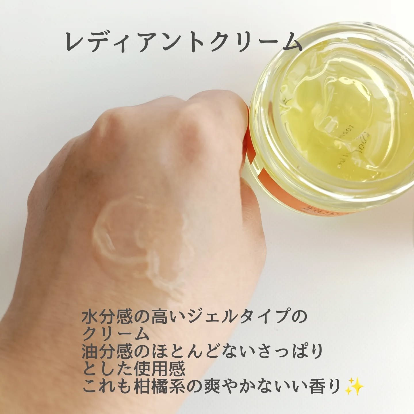 ローション オレンジがかった色味のローション。 どちらかというとしゃばしゃば系のテクスチャーなんだけどなめらか、しっとりした使用感。 クリーム オレンジ色のクリーム。 こっくり濃厚見えるのに、肌に伸ばすと柔らかく伸び広がってしっとりもっちりした感触に。 べたつかなくて使いやすいです。 どちらも優しいローズのいい香り。