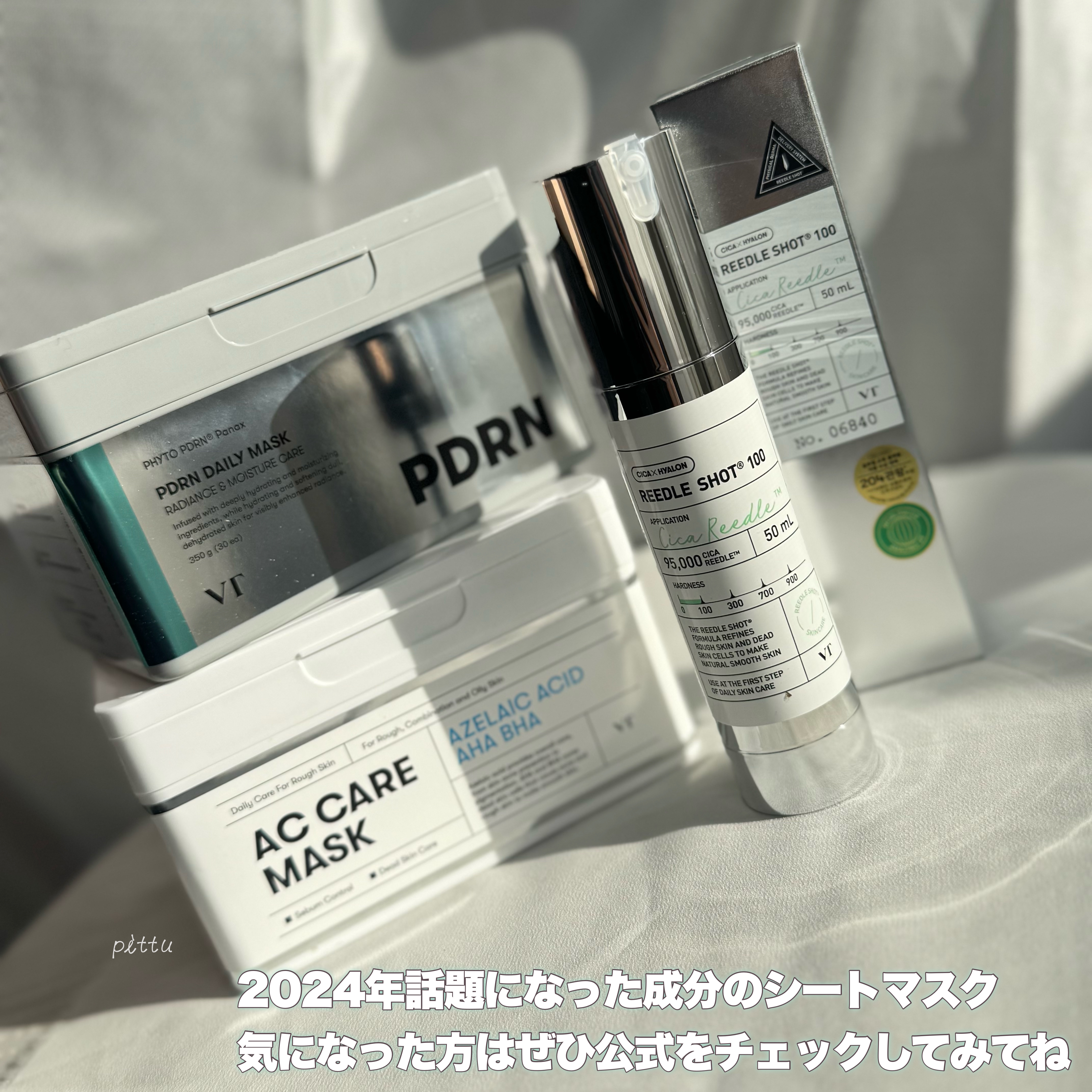 シートマスクの絶対王者VT 累計1620万個販売シートマスクから話題成分アゼライン酸・PDRNが新作登場! ニキビ跡、弾力ケアにはPDRNデイリーマスク ニキビ、ブラックヘッドケアにはACケアマスク わたしはニキビができやすいのでACマスクの方が効果を実感しやすいかなと思ったよ✔︎