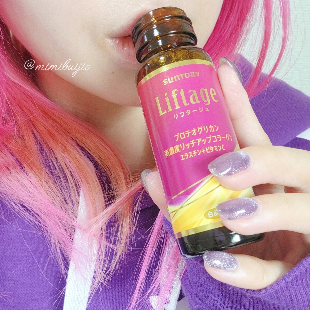 年齢美容の悩みに多角的にアプローチしてくれる「リフタージュ」を飲んでるよ✨ サントリー独自のプレミアムな3成分の組み合わせだよ🌟 甘すぎず、スッキリした味で美味しいですよ💓さすがサントリーさんだよね✨