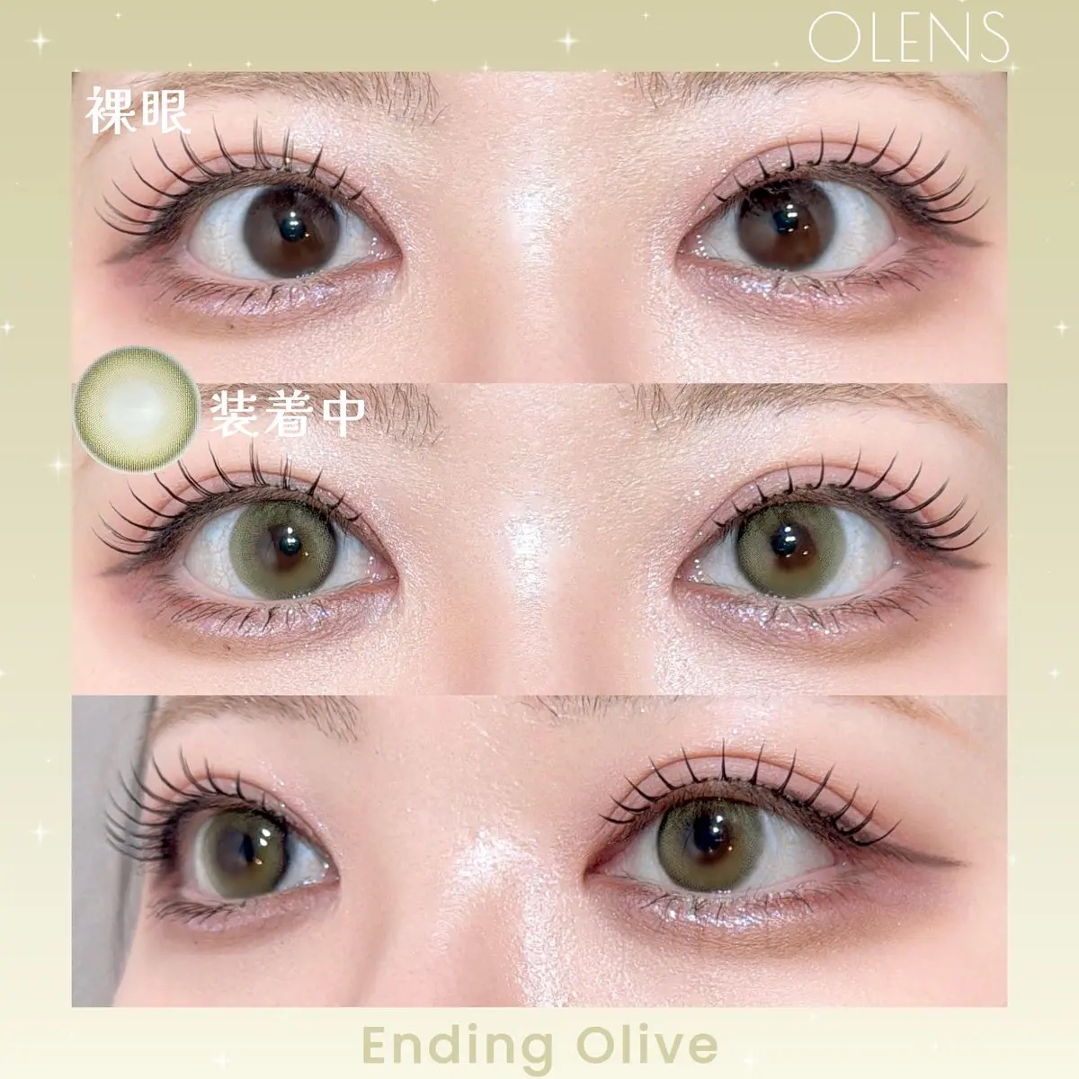 オリーブカラーは意外と馴染みが良くて グレー🩶カラーよりも浮かないので普段使いもしやすくオススメです💁♀️ 1番ナチュラルはGlowy Golden Olive 2番目はEnding リアルなハーフ顔にはスカンディ 気になった方はぜひチェックしてみてください!