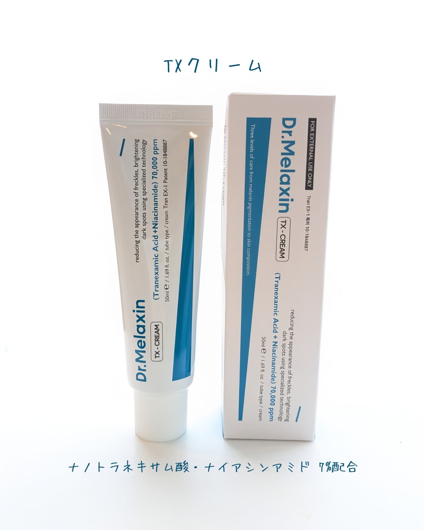 シミの飲み薬や注射に使用されるトラネキサム酸配合スキンケア代表作❗️ Dr.Melaxin TXアンプルRx+TXクリーム✨ ナノトラネキサム酸、ナイアシンアミド 8.6%配合 美肌アプローチ美容液 べたつかないさらっとテクスチャで季節を問わず年中使用できます✨✨
