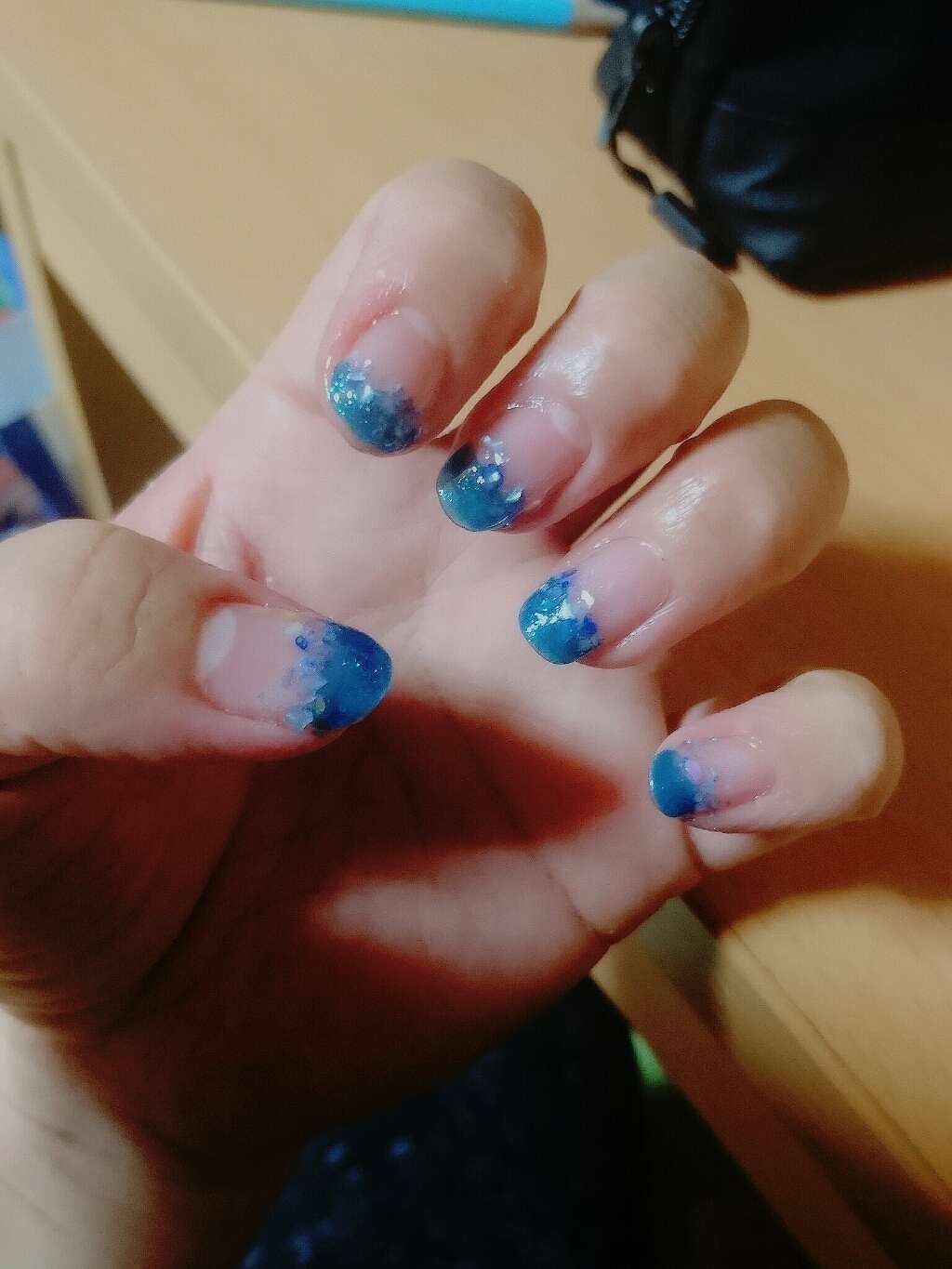 paネイルでつくる夜空みたいな寒色ネイル🌌 使用カラー:paネイルカラー #P009 #AA242 #AA245 ブルーグレーカラーがホログラム入りで単色でもとっても素敵なカラー。 ブルーラメのAA242とグレーにゴールドラメが入ったAA245で星空っぽいイメージ。