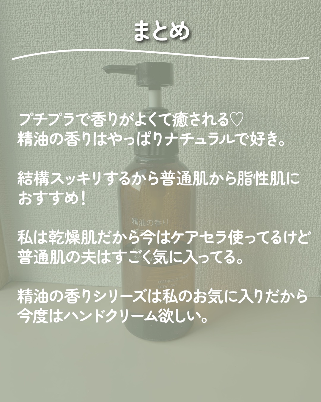 | ボディソープランキング第10位 | 泡のキメが細かいと感じました。香りが全体に広がるので、包まれながら洗う感じです☺。 | 詳細を見る |