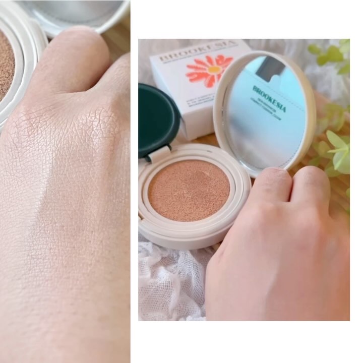 韓国認定ヴィーガンブランド「BROOKESIA」様のクッションファンデーションで #1 ペールピッチ #1.5 ライトロジー #2 ソフトロジー #3 ディープベージュのカラーがあります。 水分エッセンスが80%も配高されている水分ツヤクッションで、パフで均一に馴染ませるようにしてメイクをしていくと綺麗なツヤ肌を作ることができます。 ヴィーガンコスメが好きな方や、ツヤ肌メイクが好きな方にオススメのクッションファンデーションです。