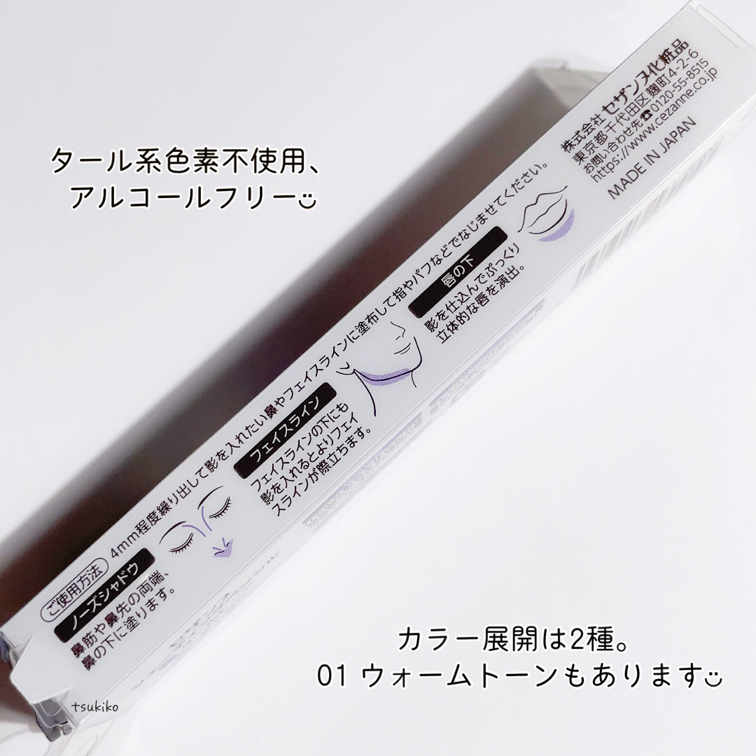 CEZANNE シェーディングペンシル 02 クールトーン ¥660 細かい部分も狙い通りに描きやすい6㎜ペンシルのシェーディング リアルな影色を仕込んで骨格を強調。理想の鼻の形や、スッキリとしたフェイスラインを演出。