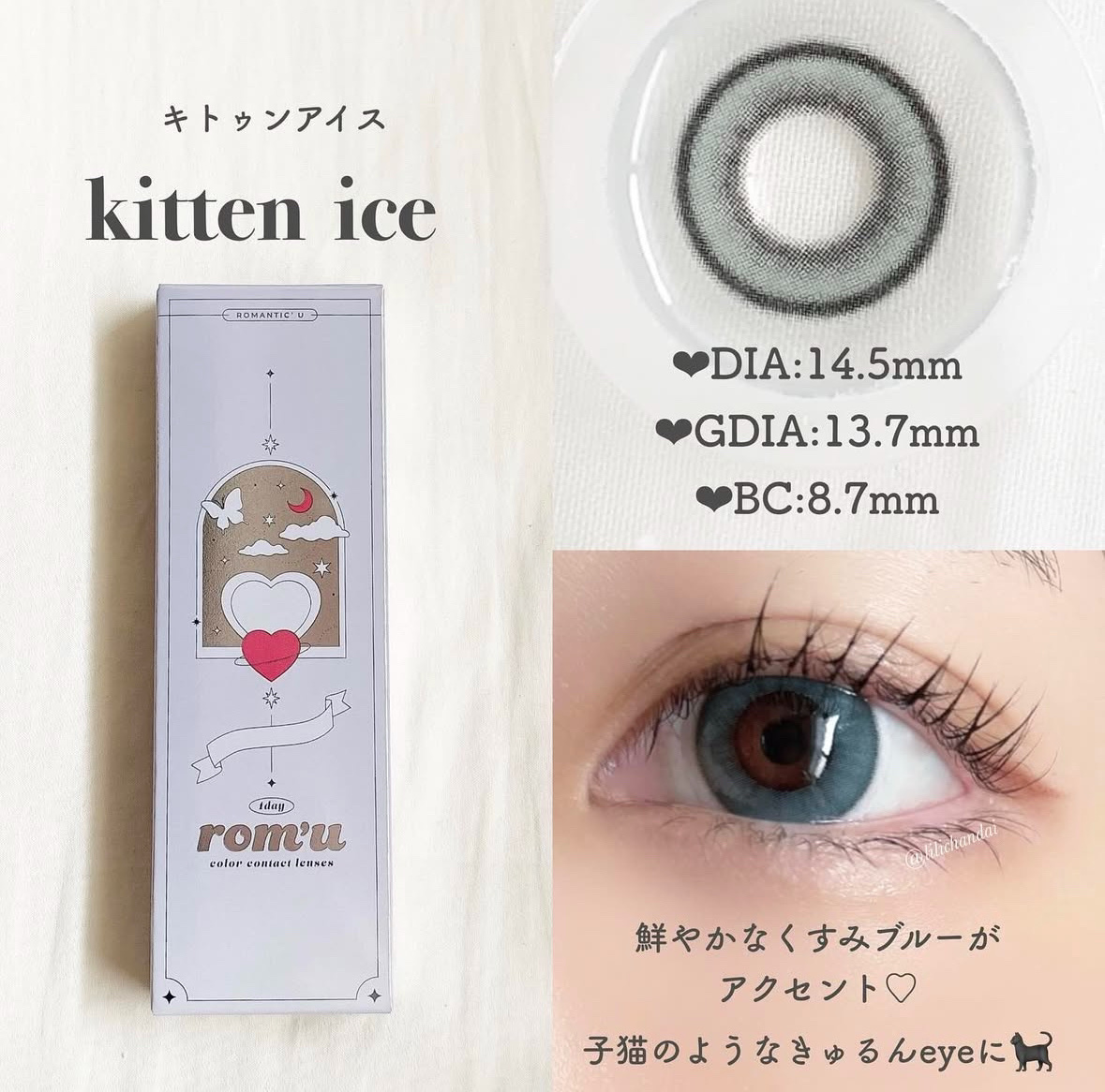 ロマンチックな世界観が魅力のカラコンブランド〖𝒓𝒐𝒎'𝒖〗からついに新シリーズ【𝙚𝙥𝙞𝙨𝙤𝙙𝙚 𝟎𝟑】が登場☁️🎀 大きめサイズ×強めなデザインでちょっぴり中毒性のある3つのレンズです❤︎ 猫好きとしては、キャットアイを再現した【キトゥンアイス】にときめきが止まらんです🥲♡