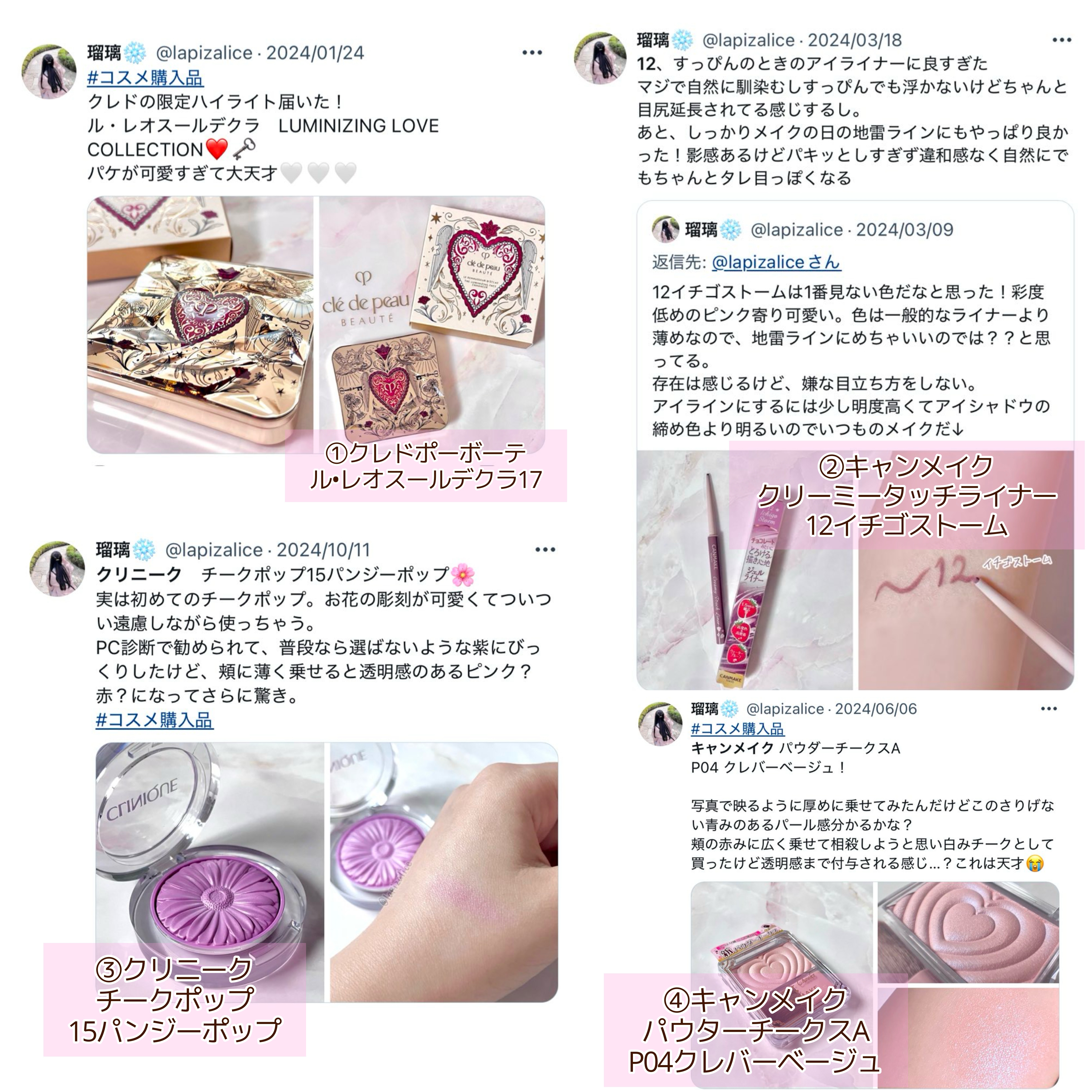 | チークランキング第3位 | ときめきチーク🥹見たまんまの綺麗な発色でツヤ感もあって良い♡ | 詳細を見る | |