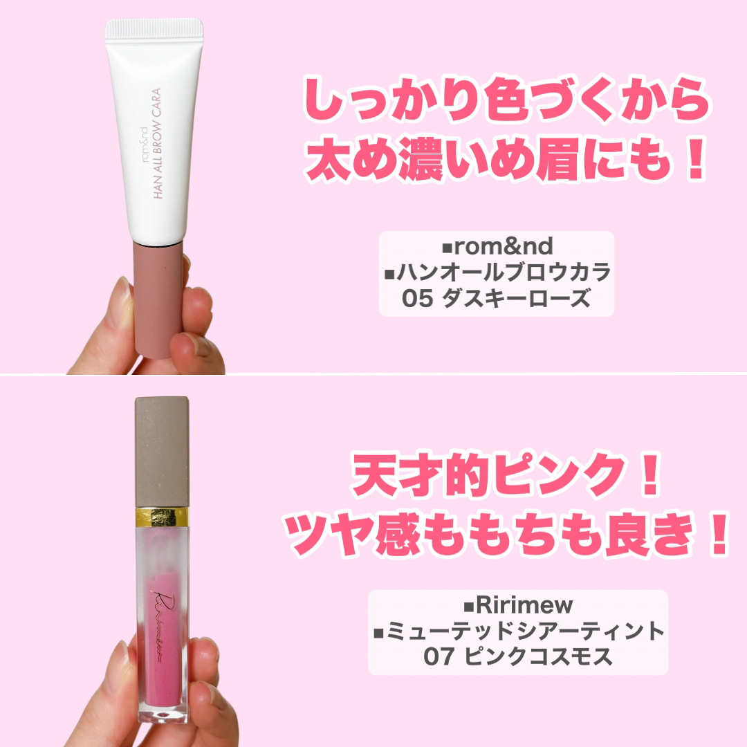 大人気のジューシーラスティングティントにブルベさんにぴったりのピンクの新色が出ました💖 26 #ベリーベリーピンク 綺麗に馴染むいちごミルクピンク 甘めかわいさ全開な鮮やか💕 27 #ピンクポプシクル 澄んだピンクに白みを一滴加えたような爽やかピンク パキッと明るく華やか💕 どちらも発色が良くて、唇がメインな華やかメイクになる💋 しっかりティッシュオフした後だとナチュラルになって使いやすいし、マスクにつきづらくなるのでおすすめです💄
