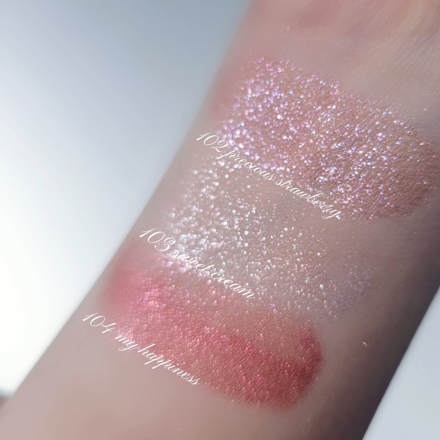 ぷるんとしたジュレ質感のアイシャドウ✨ みずみずしいテクスチャーで、密着感が強く、この可愛すぎるラメ感🥺🩷 ホリデー限定カラーは、可愛過ぎるパフェカラー🍓 限定3色各2,970円(税込) アイシャドウの下地にも、仕上げのラメでも どんな使い方でも可愛過ぎたよー🩷