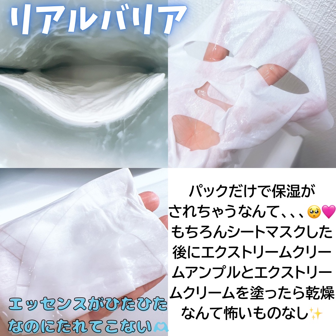 - 韓国発ダーマコスメティック ゆらぎやすい肌バリアを集中保護ケア。クリームをそのままマスクに! エクストリームクリームと同じ保湿成分オメガセラミド配合。 マイクロファイバー繊維シートが肌に隙間なく密着し、角層のすみずみまで潤いを届けます。 肌質を選ばず使えて、バリア機能をサポートします。