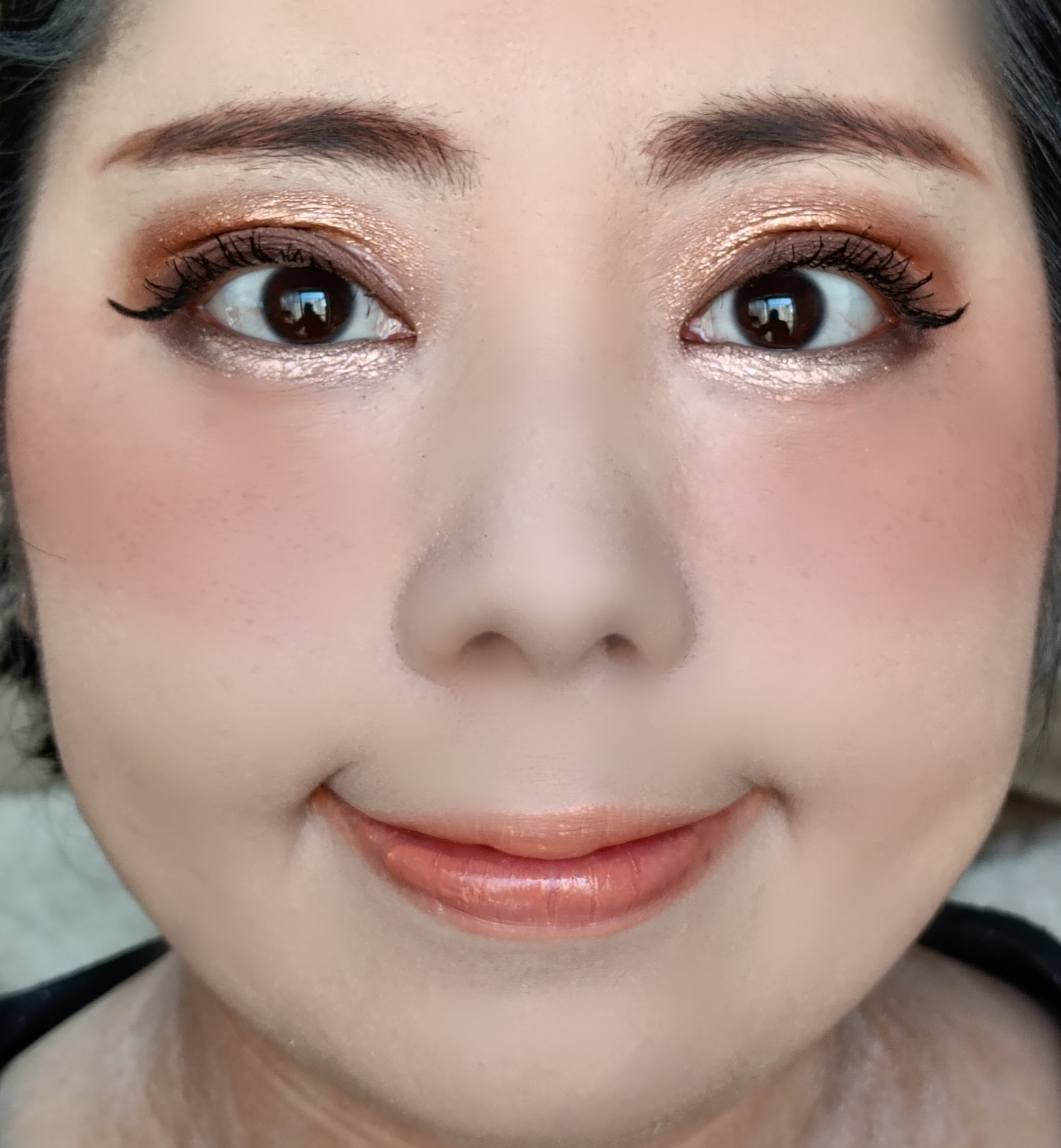アイシャドウパレットは、UR GLAM アイシャドウパレットを、使用しました。 リップは、M・A・C リップスティック ピーチストックを、唇全体にまんべんなく塗ります。