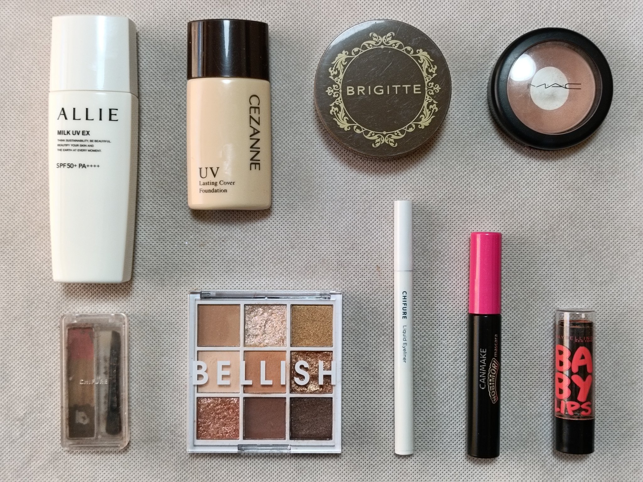 アリィー ニュアンスチェンジUV ジェル RSを、顔全体にまんべんなく塗ります。 RMK RMK ジェルクリーミィファンデーション 103を、顔全体にまんべんなく塗ります。 ジョンソンベビー ジョンソン ベビーパウダーを、顔全体にまんべんなく軽くはたきます。 THE BODY SHOP bronze shade warm glowを、両頬に塗ります。 KATE リフレクトミラーアイズ BR-1の締め色を、眉毛全体にまんべんなく塗ります。 URGLAM UR GLAMBLOOMING EYE COLOR PALETTE 01を、使用しました。 ちふれ リキッド アイライナー 筆ペンタイプ BK30 ブラックを、塗ります。 CEZANNE エアリーカールマスカラを、まつ毛全体にまんべんなく塗ります。 MAYBELLINE NEW YORK コロッサルボリュームエクスプレスを、まつ毛全体にまんべんなく塗ります。 MAYBELLINE NEW YORK SPステイ マットインク 135を、唇全体にまんべんなく塗ります。