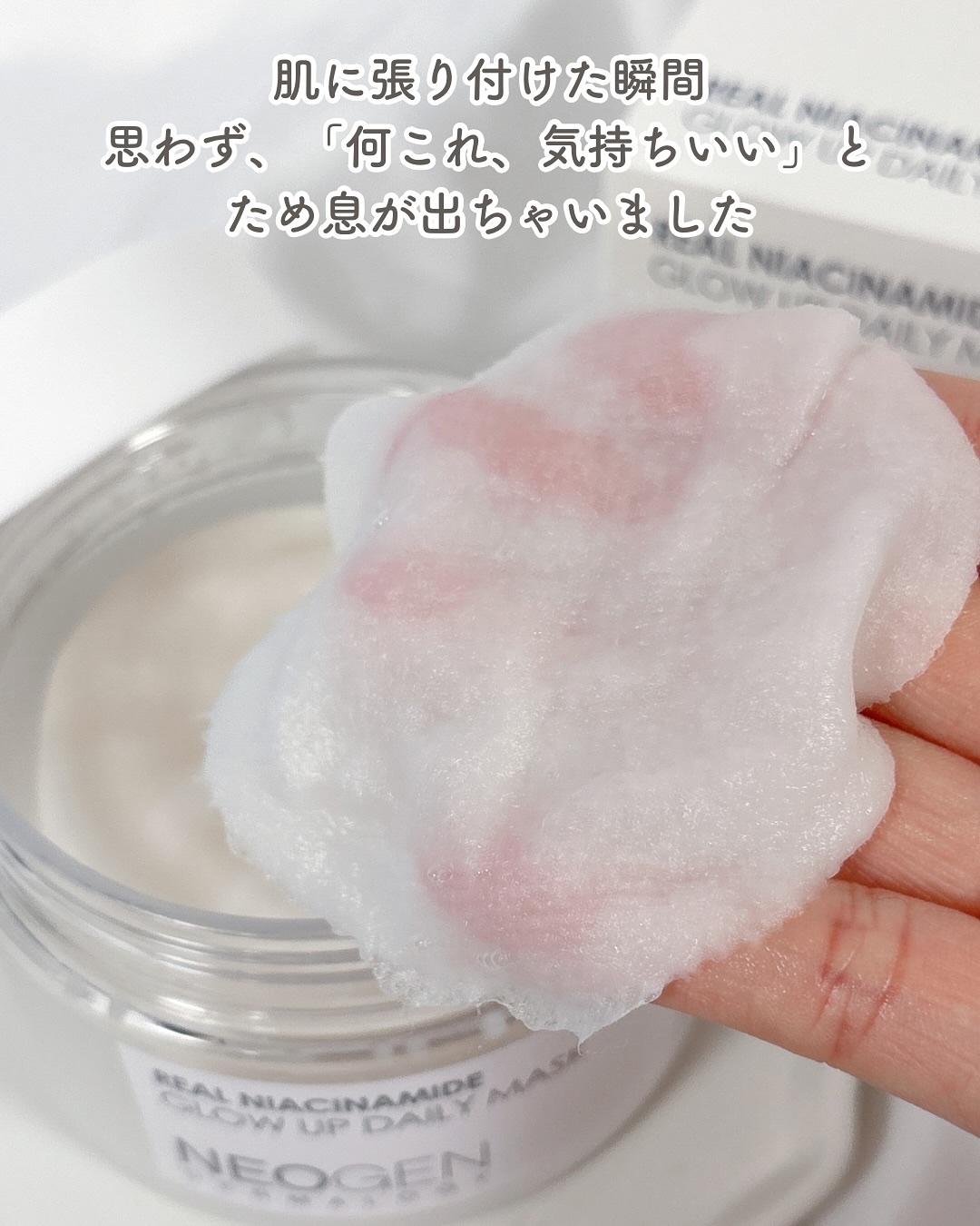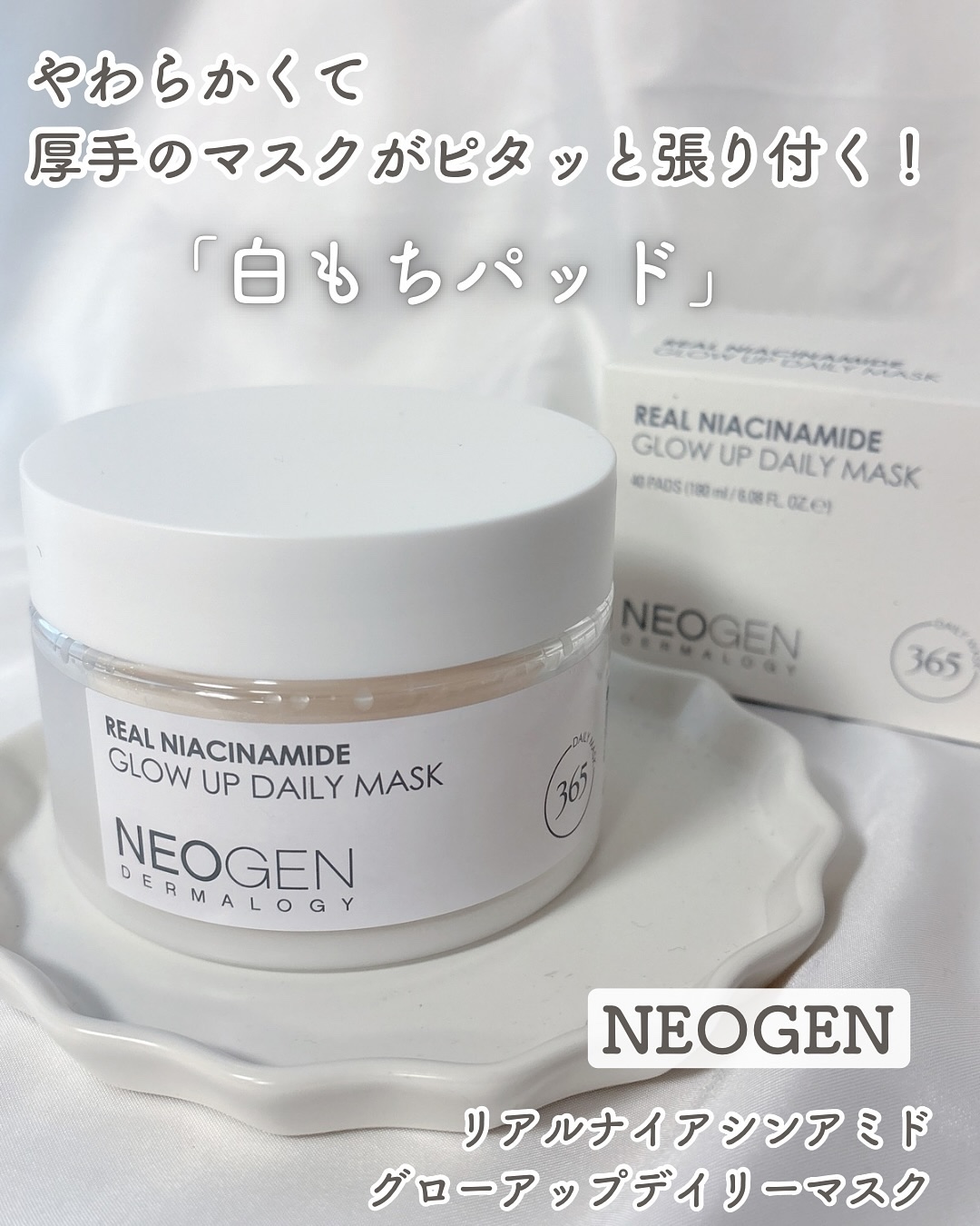 NEOGEN⧉REALNIACINAMIDEGLOWUPDAILYMASK⧉メイク前にもオススメのパッド型デイリーマスクくすみが気になるお肌にもオススメ✼••••✼••••✼柔らかく厚手な純綿ニット生地ツヤ保湿セラムを丸ごと1本浸み込ませた、...
